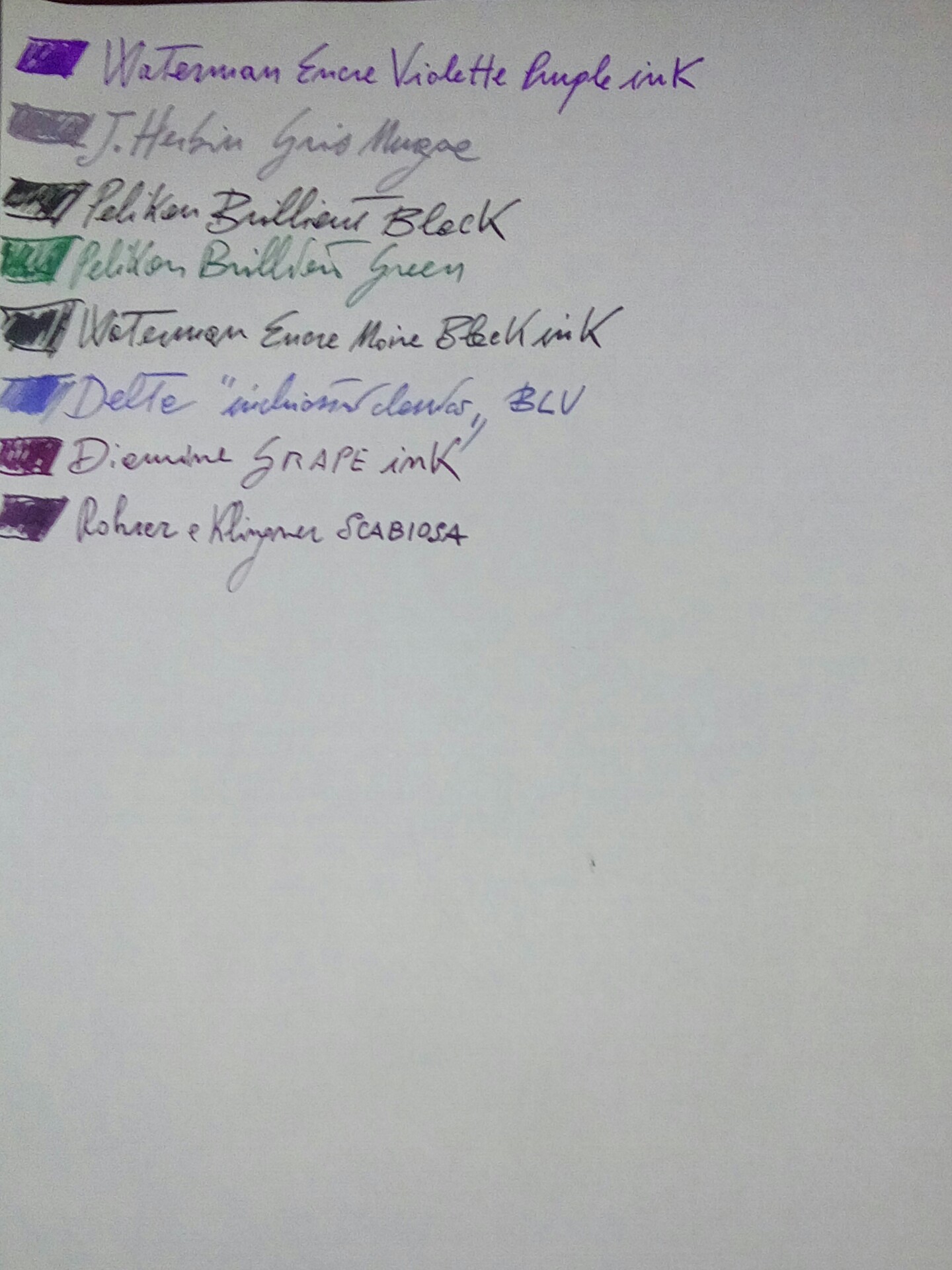 Ecco la mia, per ora povera, lista di inchiostri. Quelli che uso di più sono i due Parker e il Delta.
