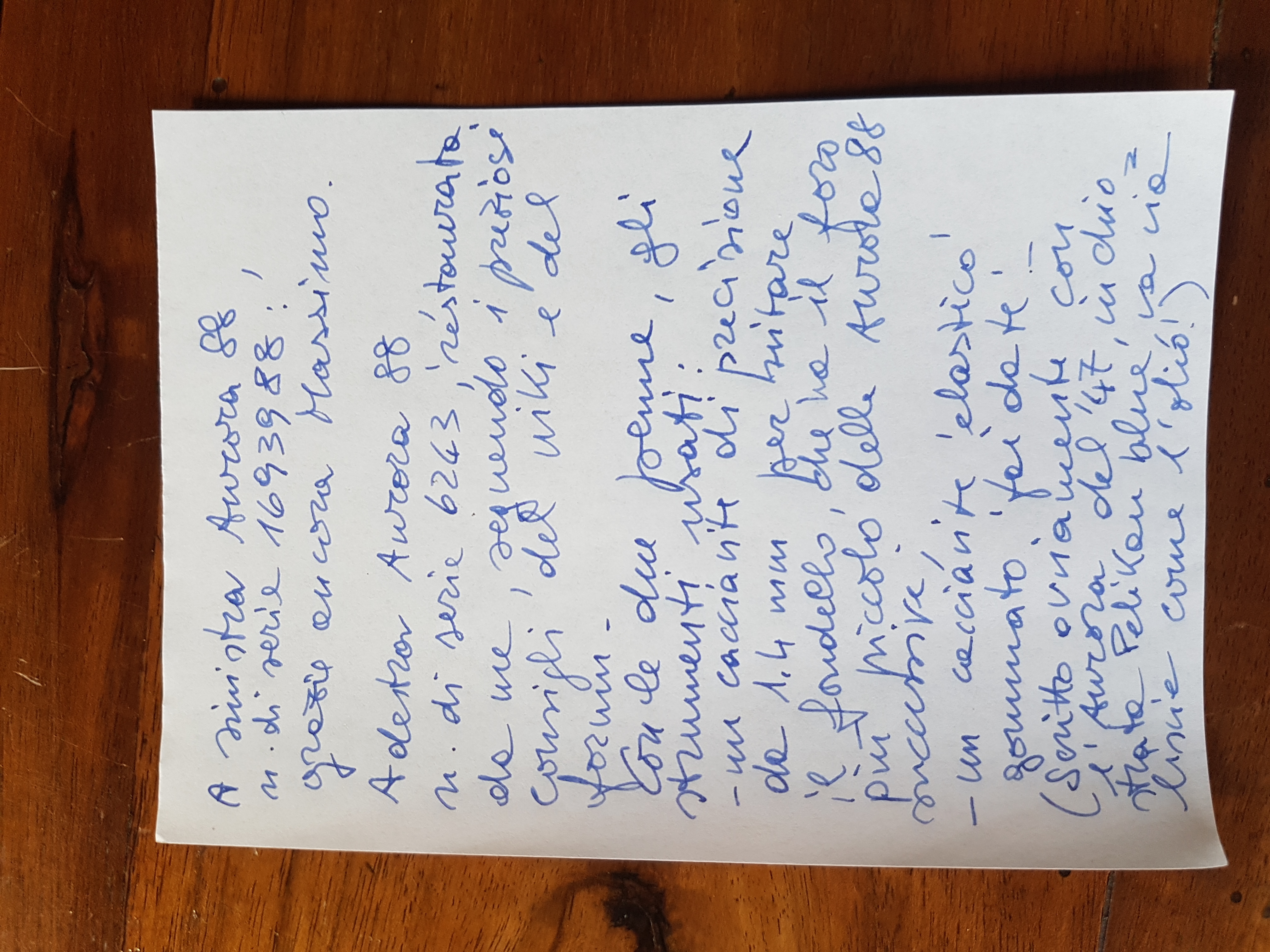 Polemarco ha scritto: domenica 15 settembre 2019, 20:25 È da un po’ di tempo che combatto con i pennini. Questa Aurora 88 ga un pennino con le alette “stondate” come quello della 98 ? O sono io che vedo male ?