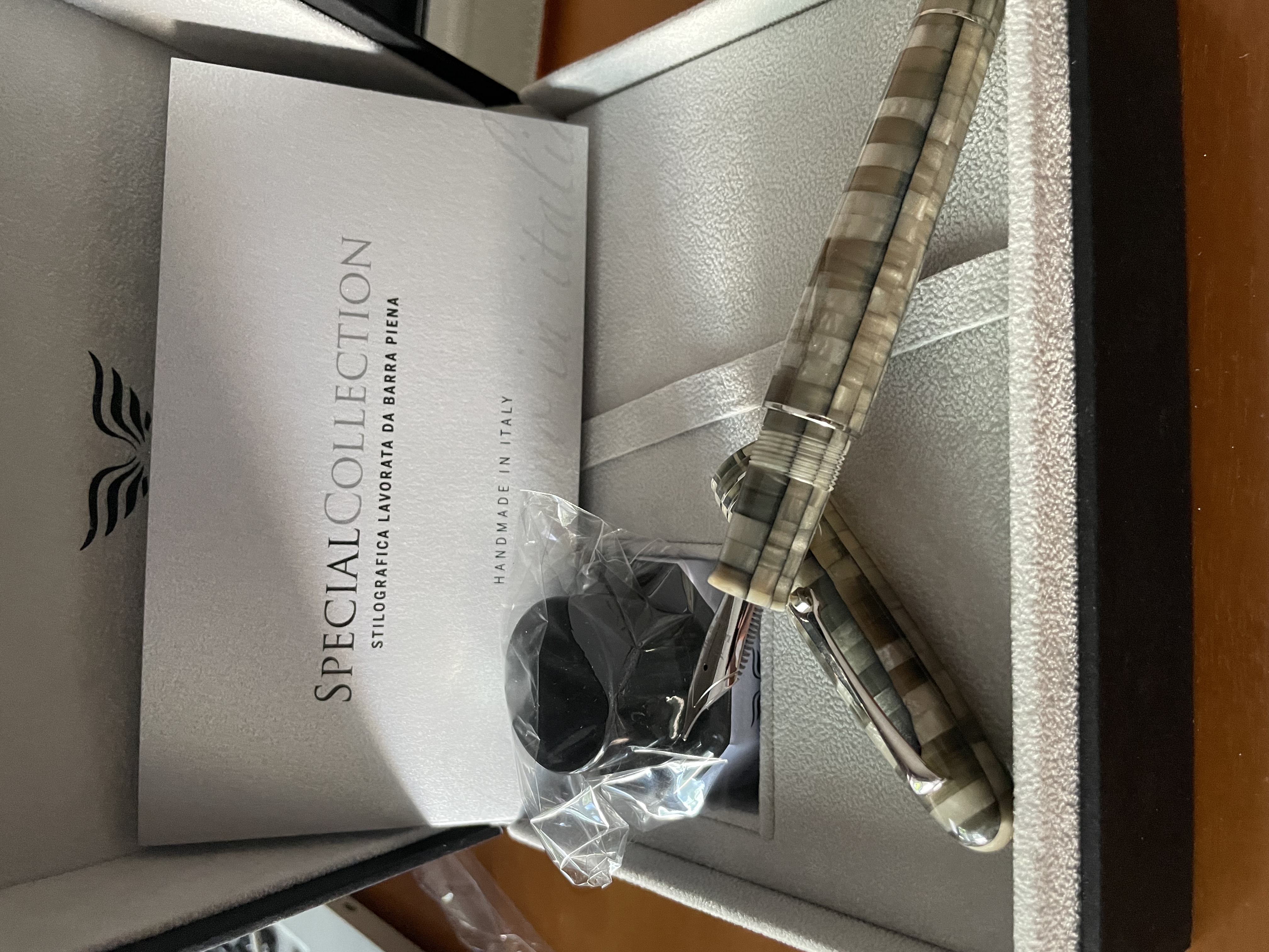 Avendo letto diverse recensioni che ponevano in luce difetti da me non rilevati forse risolti o forse per avere ricevuto un esemplare fortunato, ho voluto scrivere alcune righe che vorrei allegare insieme a qualche foto. Inserendo la stilografica nella propria fascia di mercato mi sento di spezzare una lancia in suo favore. questo come diceva Rino Tommasi è il mio personale cartellino e nulla più! La carta è Rhodia e la pessima calligrafia non è da imputare al pennino ma esclusivamente a me.
