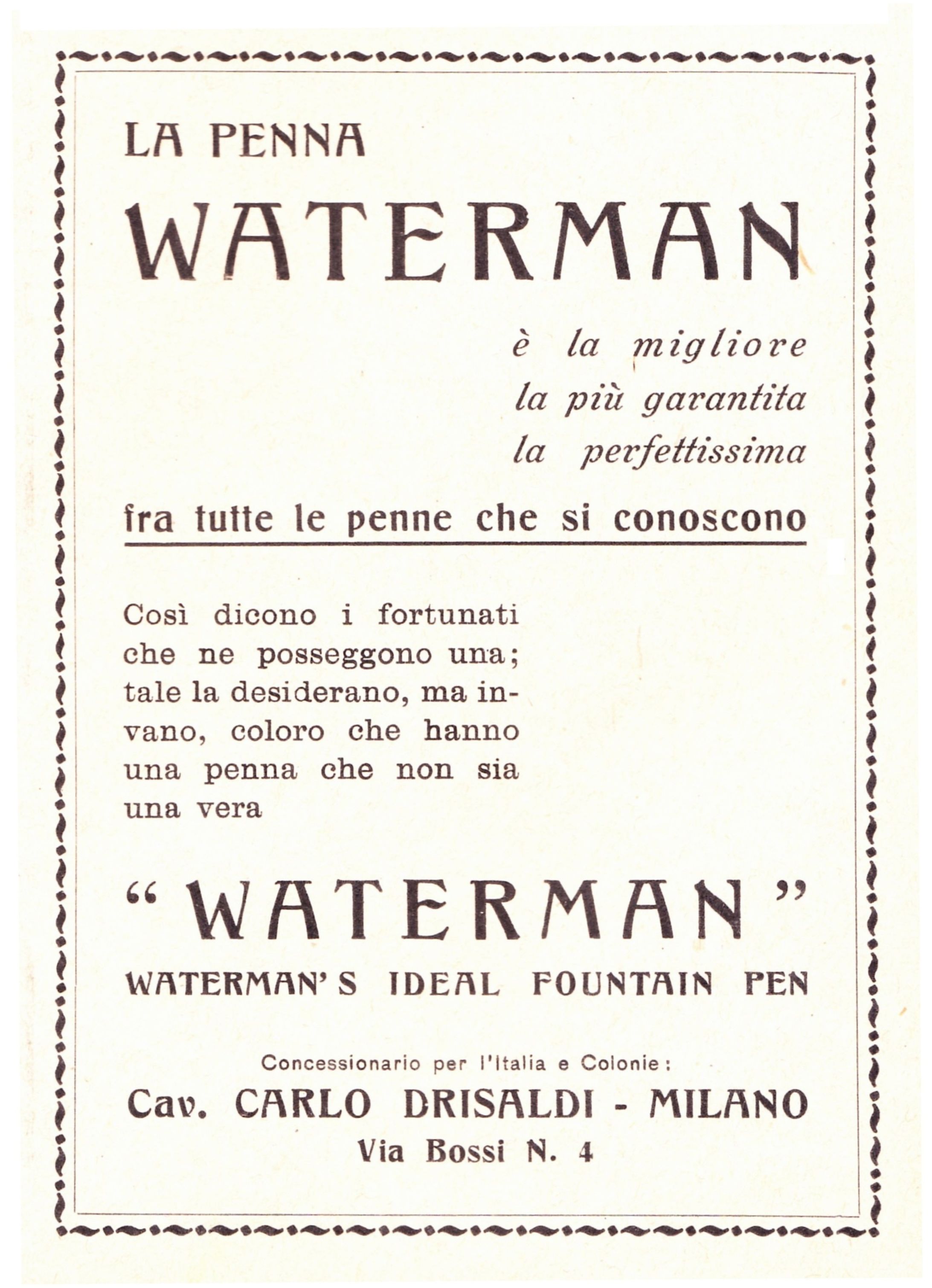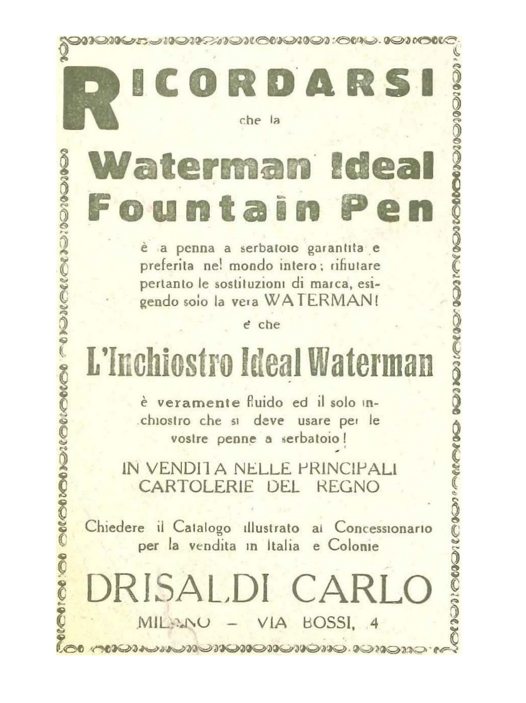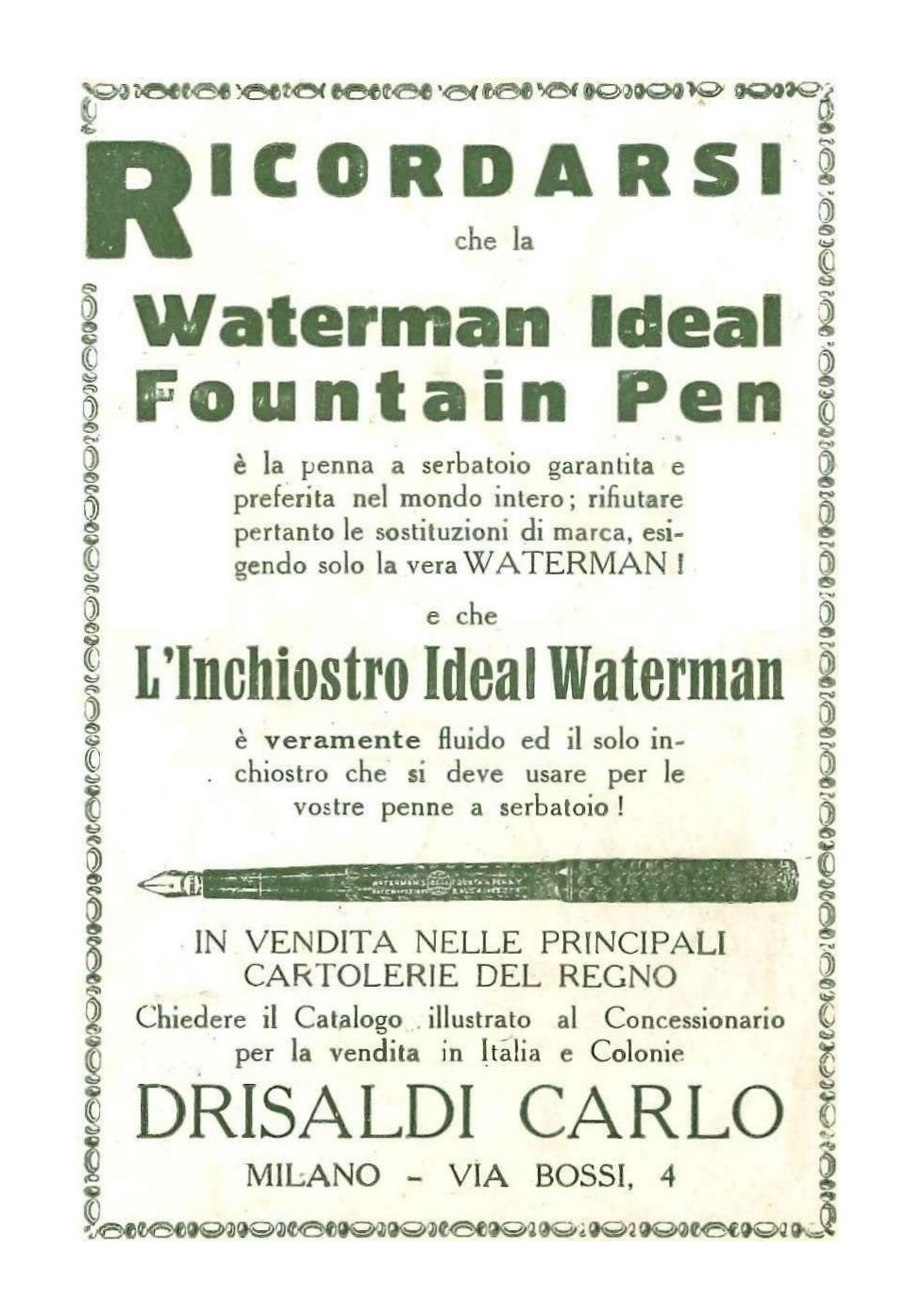 Ancora nel giugno 1932 il Concessionario italiano della Waterman era Capra (subito prima dell'avvicendamento con i Fratelli Cavaliere).