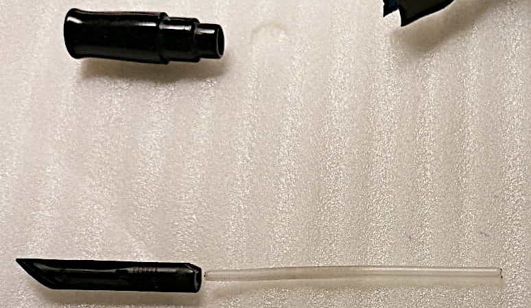 Avevo conservato un tubetto da profumo, un'ora di progressive carte abrasive per portarlo alla misura del foro del feeder e... funziona!