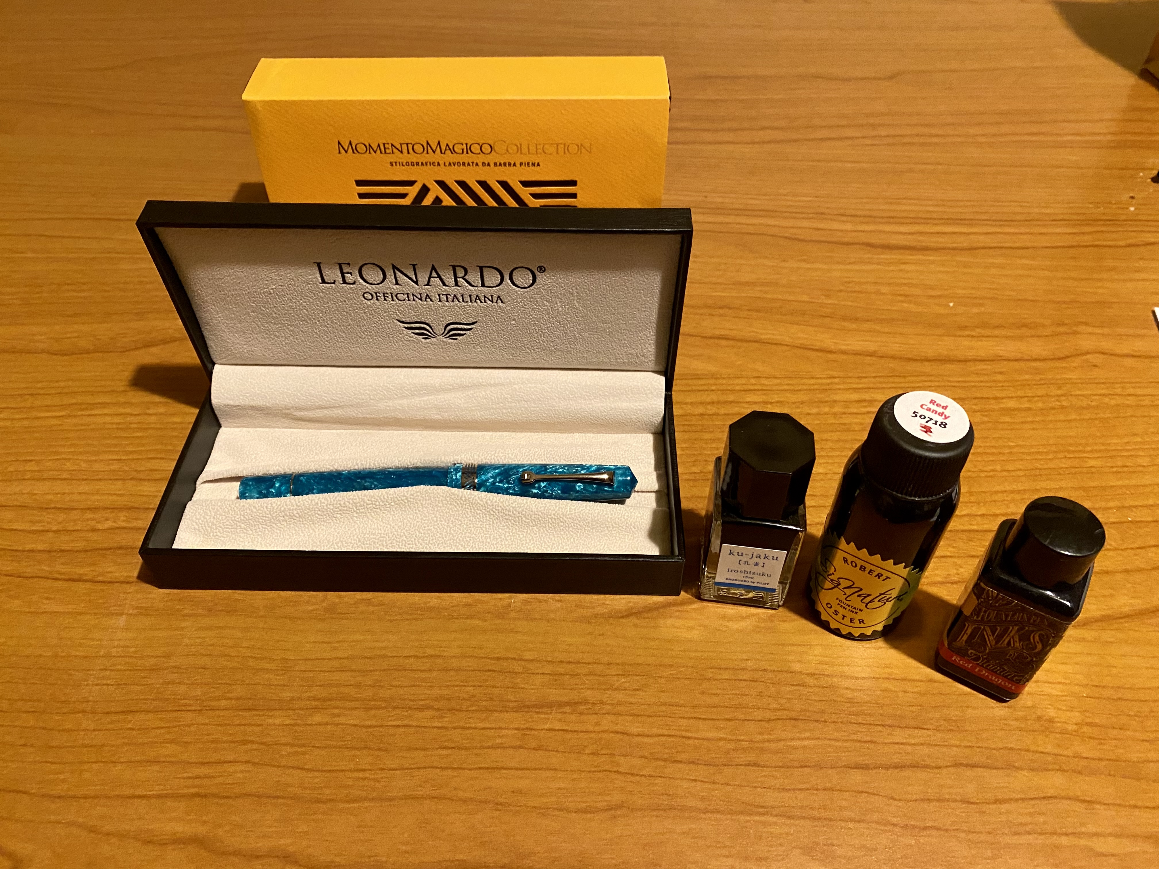 Leonardo Officina Italiana con pennino elastic EF e tre nuovi inchiostri da provare:
