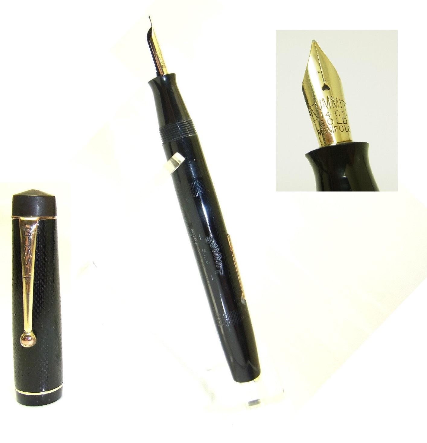 Ma c'è di più: hai trovato un esemplare abbastanza raro, utilizzato dai contabili dell'epoca (anni '30 e '40): infatti, il pennino è un "Manifold", adatto per la scrittura a ricalco. Pur interessandomi in modo approfondito al marchio da alcuni anni, e pur sapendo che questo tipo di pennino era compreso nel catalogo Summit, è la prima volta che ne vedo uno.