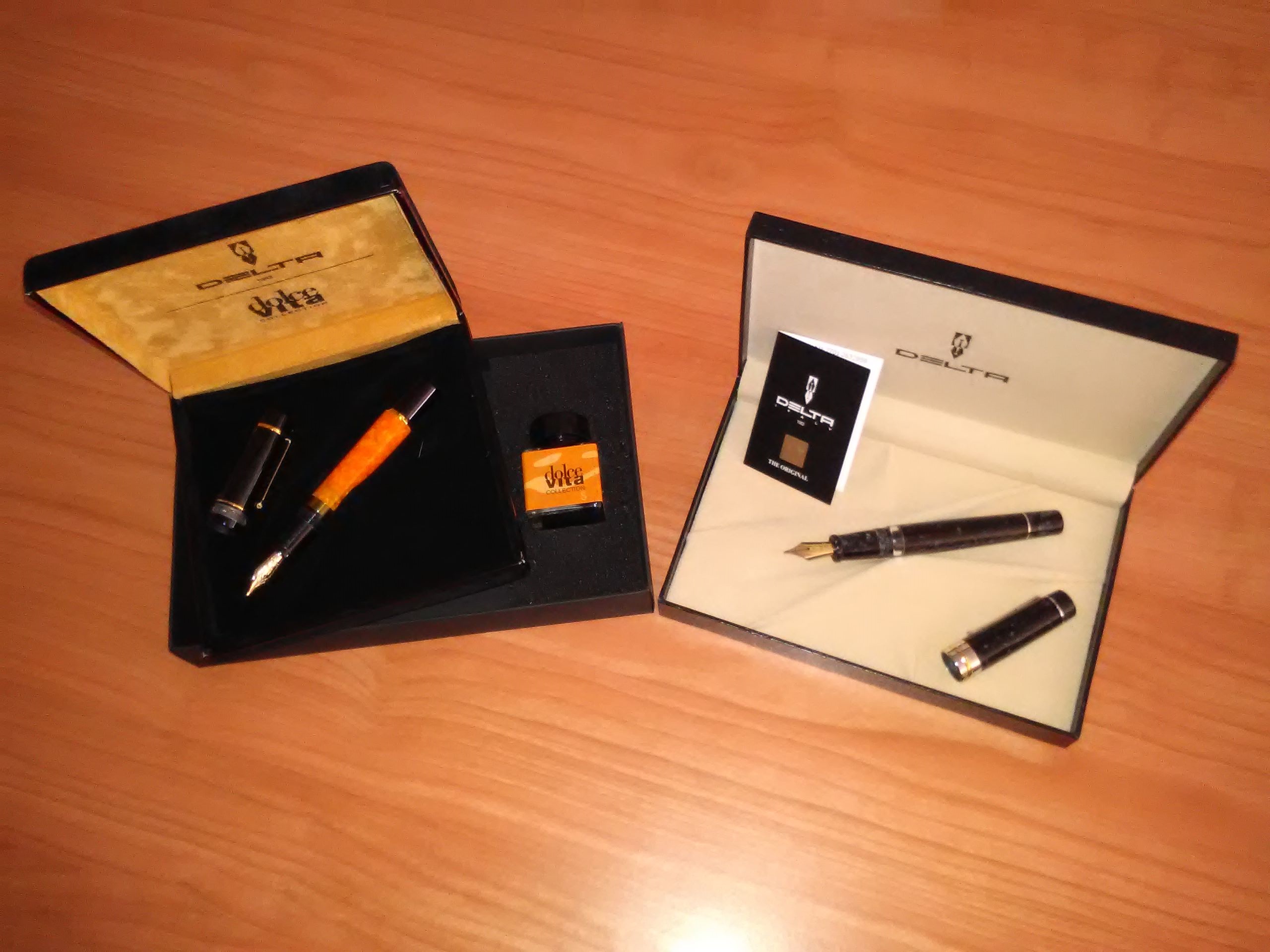 Appena arrivate, non è il primo acquisto dell'anno e non sarà l'ultimo. Sono arcicontento di aver trovato la FP500 per due motivi: è la prima penna del Forum e per il pennino, il meraviglioso Fusion, in questo caso B, "inventato" per questa penna. Già caricata con il Delta nero in dotazione alla Dolce Vita. Per quest'ultima, (meglio two che one) il pennino è un M, stasera la carico con un Waterman blu.