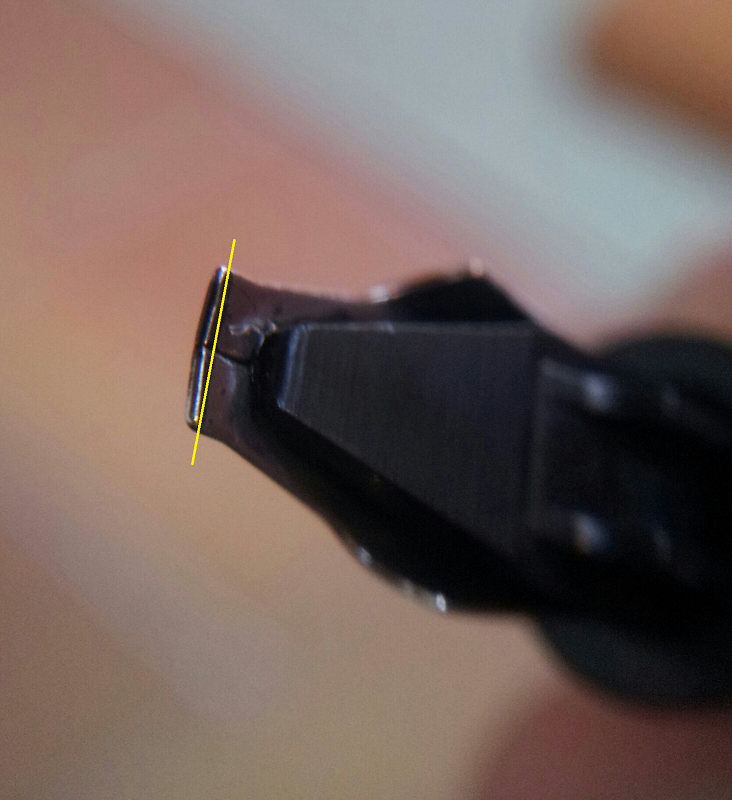 Confermo le leggera curva, pur osservando il pennino in posizione corretta e senza lenti di ingrandimento che potrebbero creare una distorsione