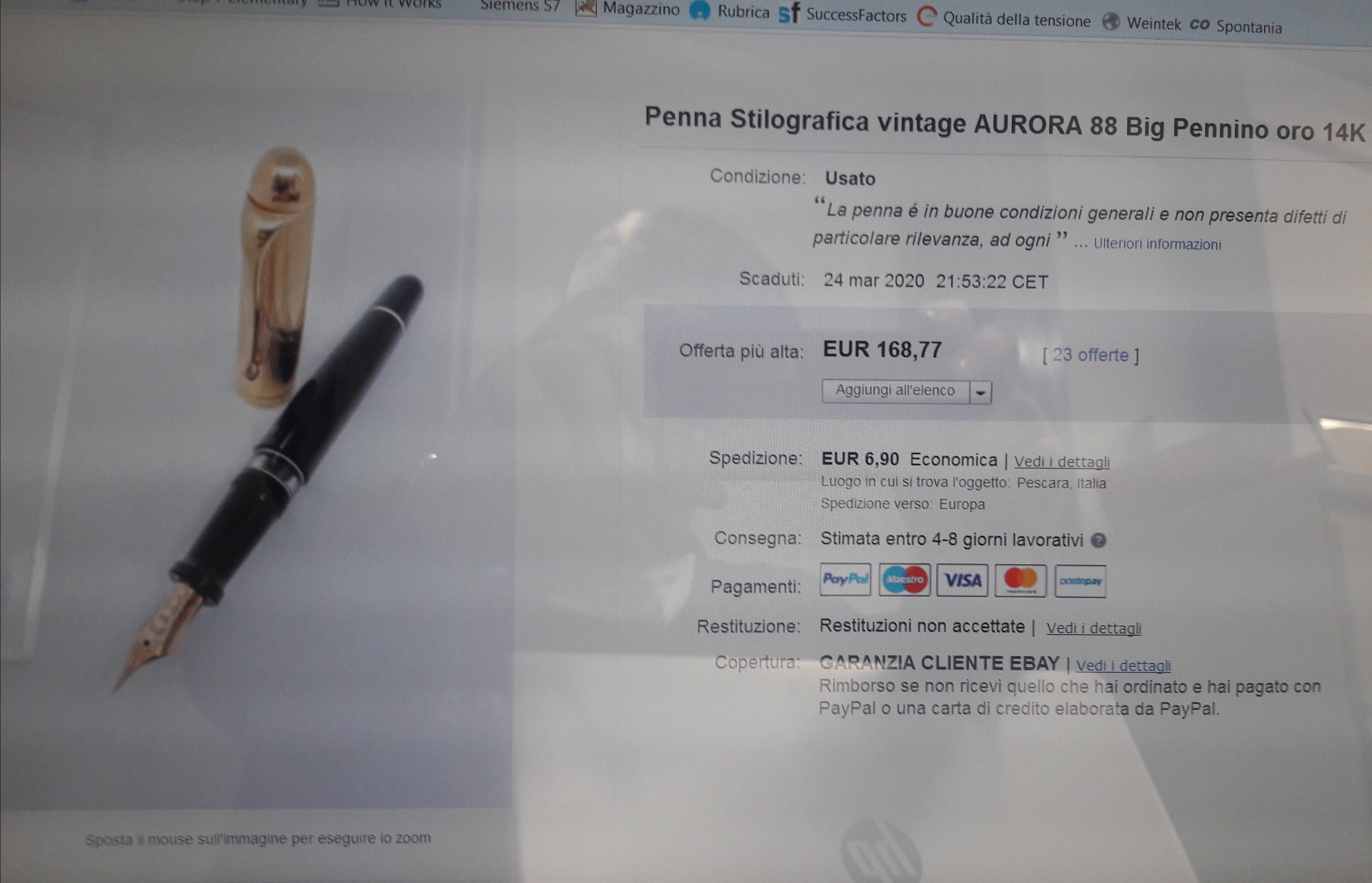 Io quest'autunno avevo avuto 2 fortune: prima di tutto di trovarla a quel prezzo, e poi di trovare in rete il pezzo di ricambio che mi serviva (ovviamente usato) ad un prezzo ragionevole (Aurora non vende i ricambi, se qualcosa non funziona occorre inviare loro la penna in assistenza): alla fine, con meno di 200 ho avuto la penna perfettamente funzionante.