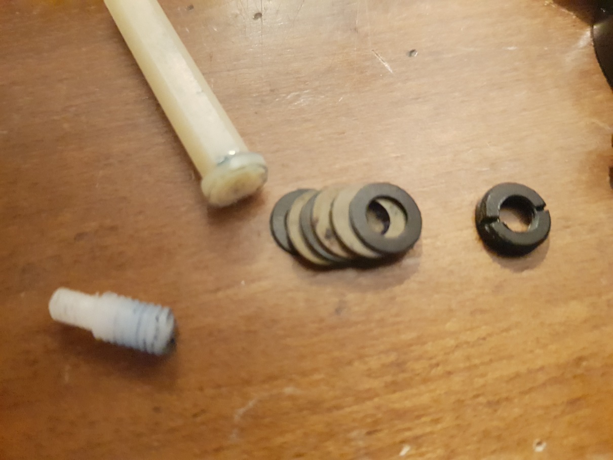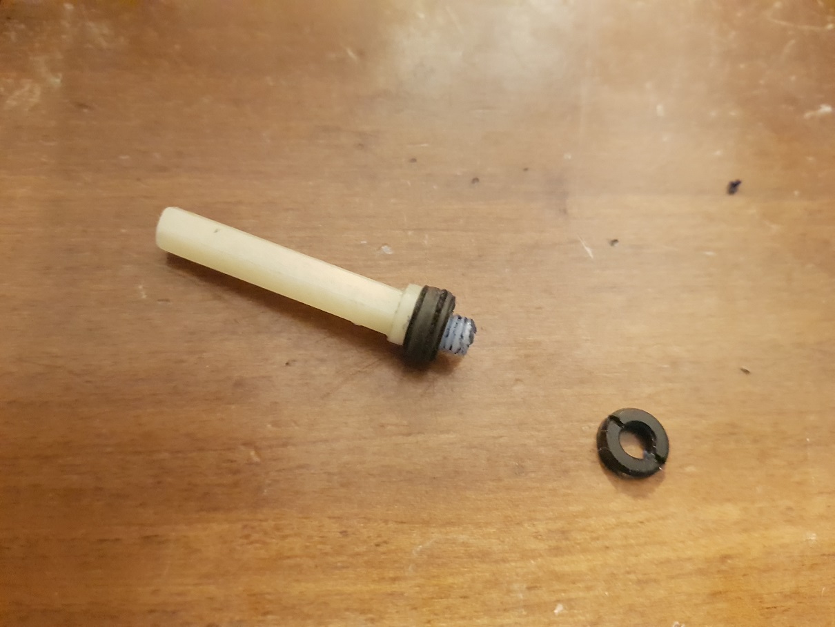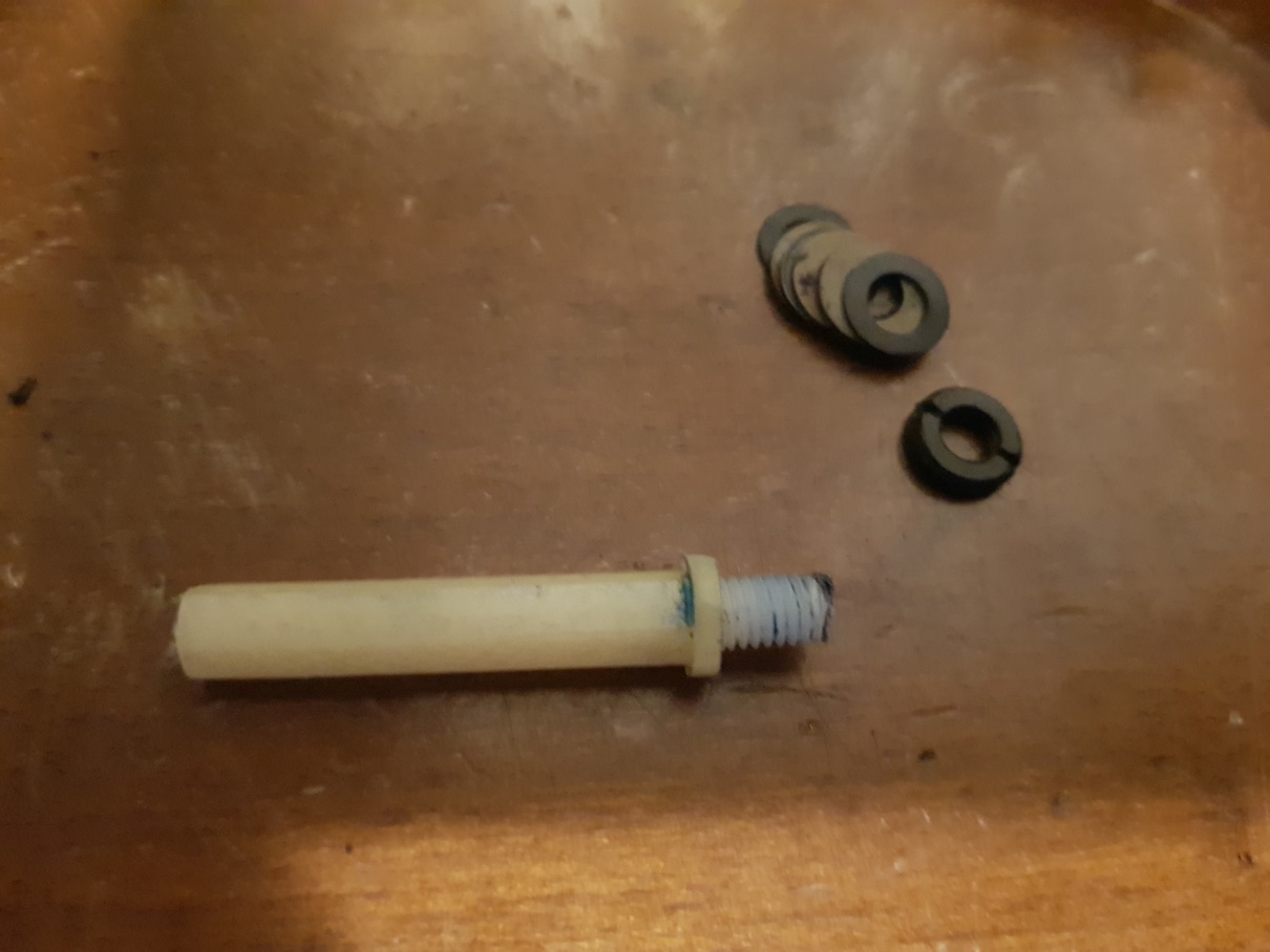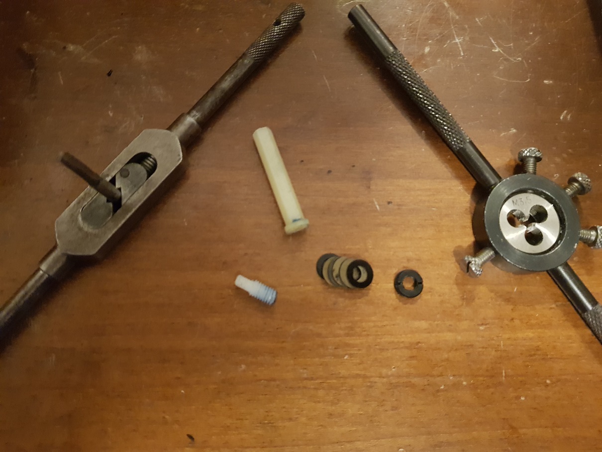 Il pistone della 88 si può riparare riportandolo come era in origine. Leggo di chi vuole mettere viti o dadi in metallo. Io credo che se nel pistone non c'erano pezzi metallici sarebbe meglio non metterceli. Il sistema è molto semplice e non implica chissa quale manualità. Per prima cosa bisogna procurarsi delle viti in teflon del passo m5 (io le ho acquistate di vari passi e lunghezze in un negozio di modellistica). Poi bisogna avere una filiera per filettare la vite nella parte che deve avvitare dentro al pistone (io ho utilizzato una Bergeon che costa parecchi soldi e che può fare la differenza sul metallo ma, sinceramente, per il lavoro da svolgere su un materiale morbido come il teflon, va bene pure quella cinese da pochi euro). Si taglia alla base la parte filettata rimasta eventualmente integra e che risulta corta e si effettua una filettatura da 3,5 mm. La stessa cosa si fà con una estremità della vite da 5. Si taglia poi a misura e il pistone è ripristinato. Metto qualche foto che sono meglio di tante parole.