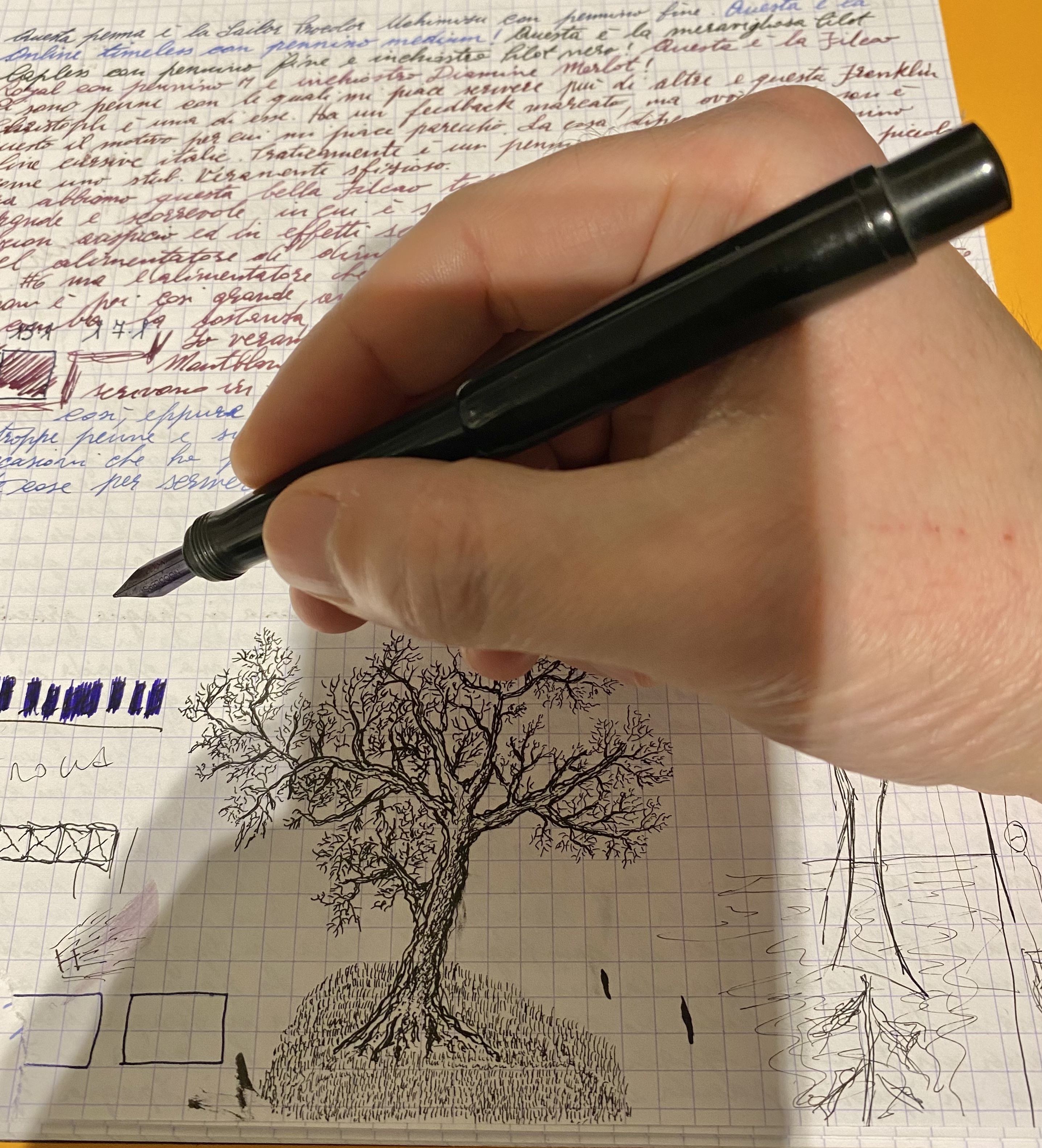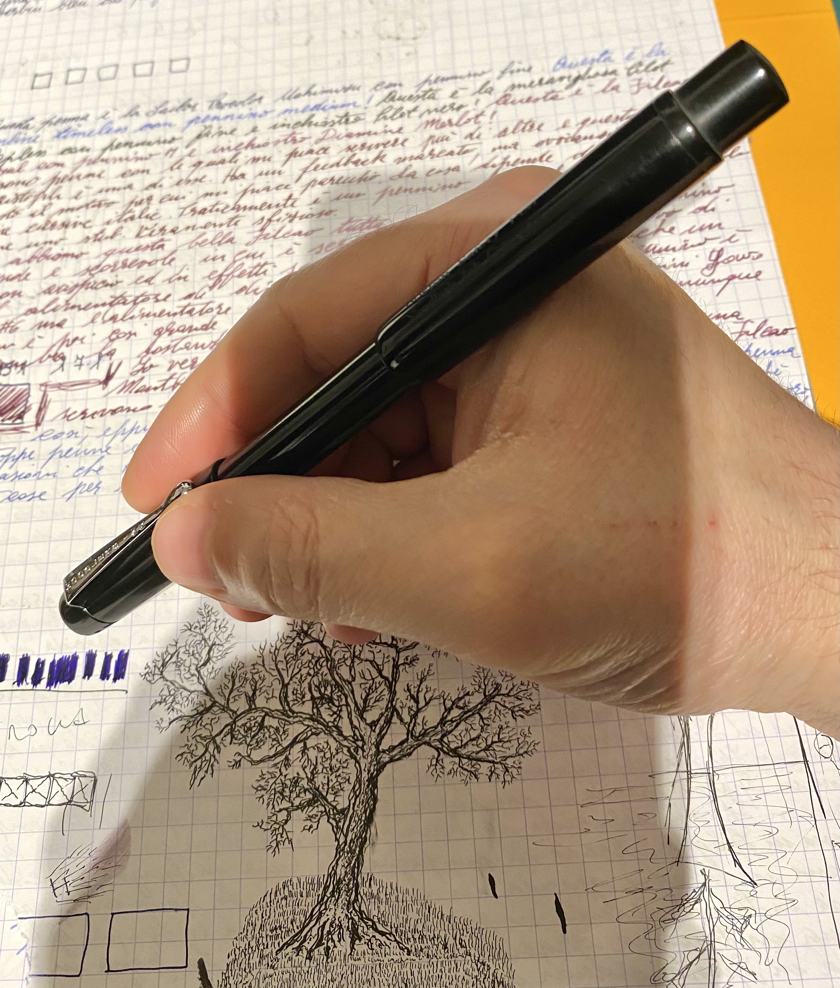 Devo dire che malgrado le solite manovre di lavaggio, continua a tutt’oggi a darmi problemi di false partenze e blocchi di flusso, malgrado il pennino sia sempre immerso nell’inchiostro, anche perché la tengo stesa sul tavolo