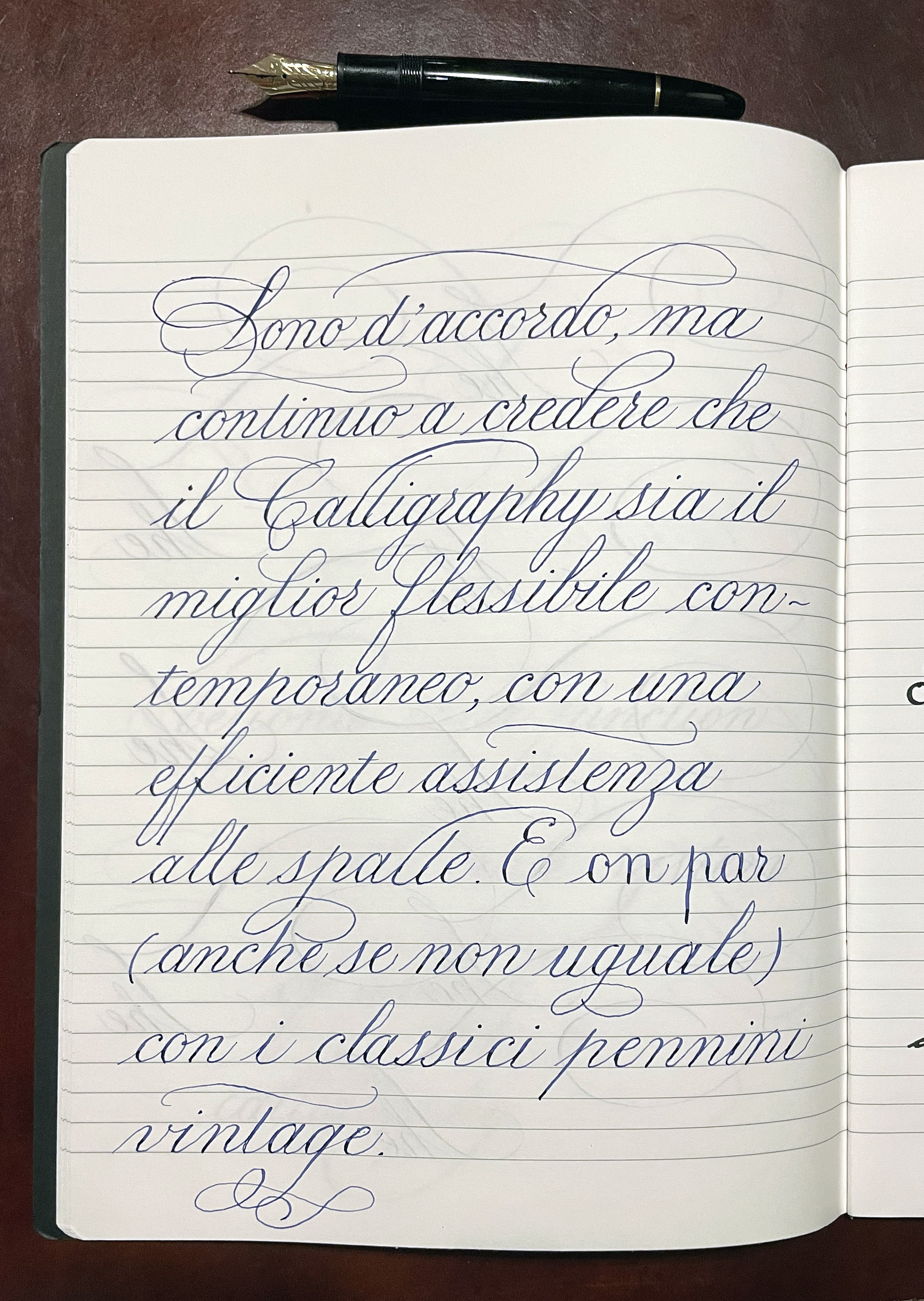 eccellente flessibilità e una elasticità appena subottimale - il mio Montblanc Calligraphy é uno di questi questi. Per questo, come lei ha ben notato, si presta altrettanto bene per la calligrafia come per la scrittura ordinaria".