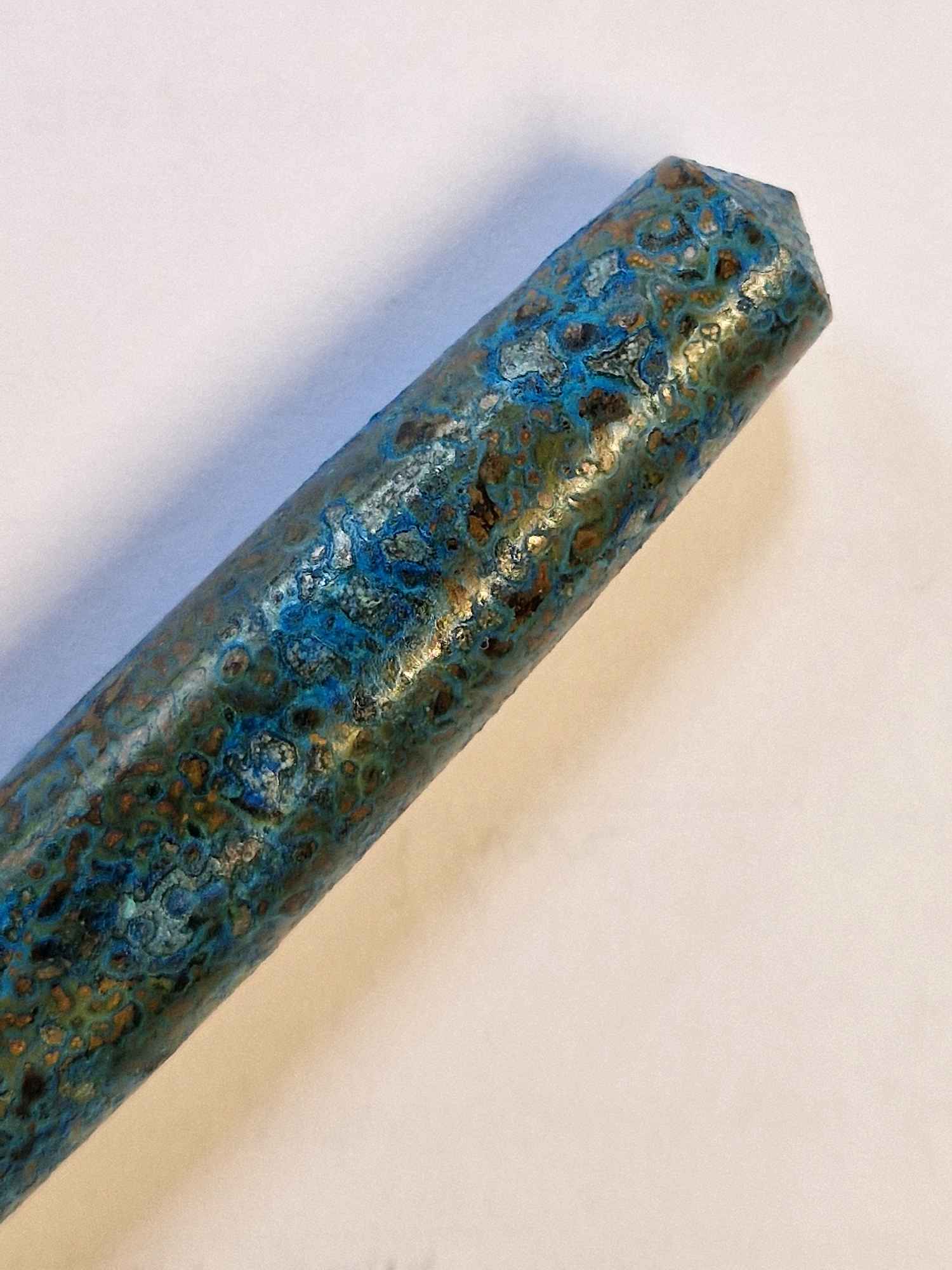 È una brass con forced patina. Anche la sezione di questa è sempre acciaio personalmente le trovo comodissime perché evitano che la penna diventi "back heavy"