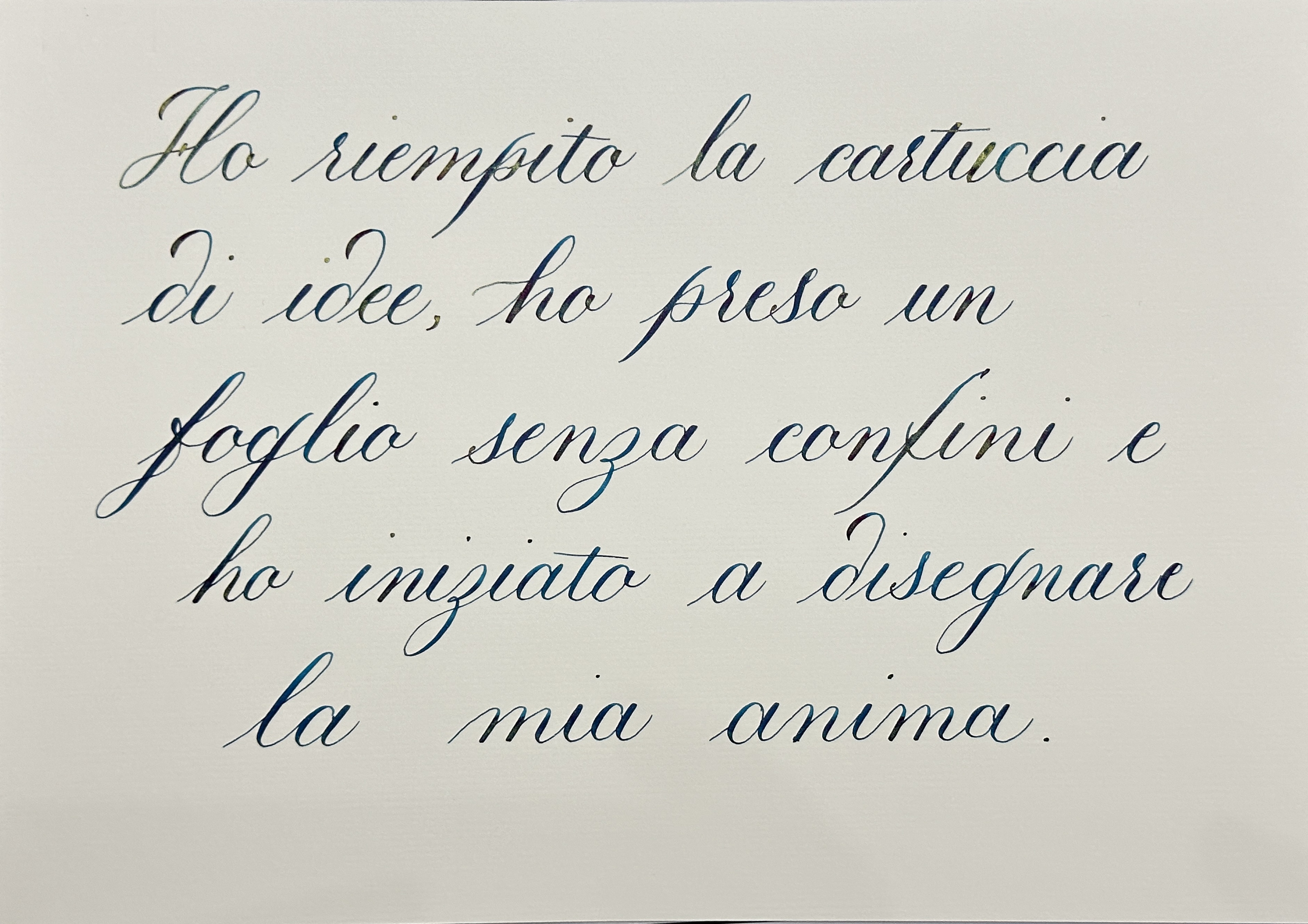 Siccome ho usato una penna che non dispone di converter né di cartuccia, ho dovuto anch'io cambiare un poco le prime due linee di testo, ma mi pare che il risultato sia rimasto fedele, se non alla lettera, almeno allo spirito del tuo pensiero.
