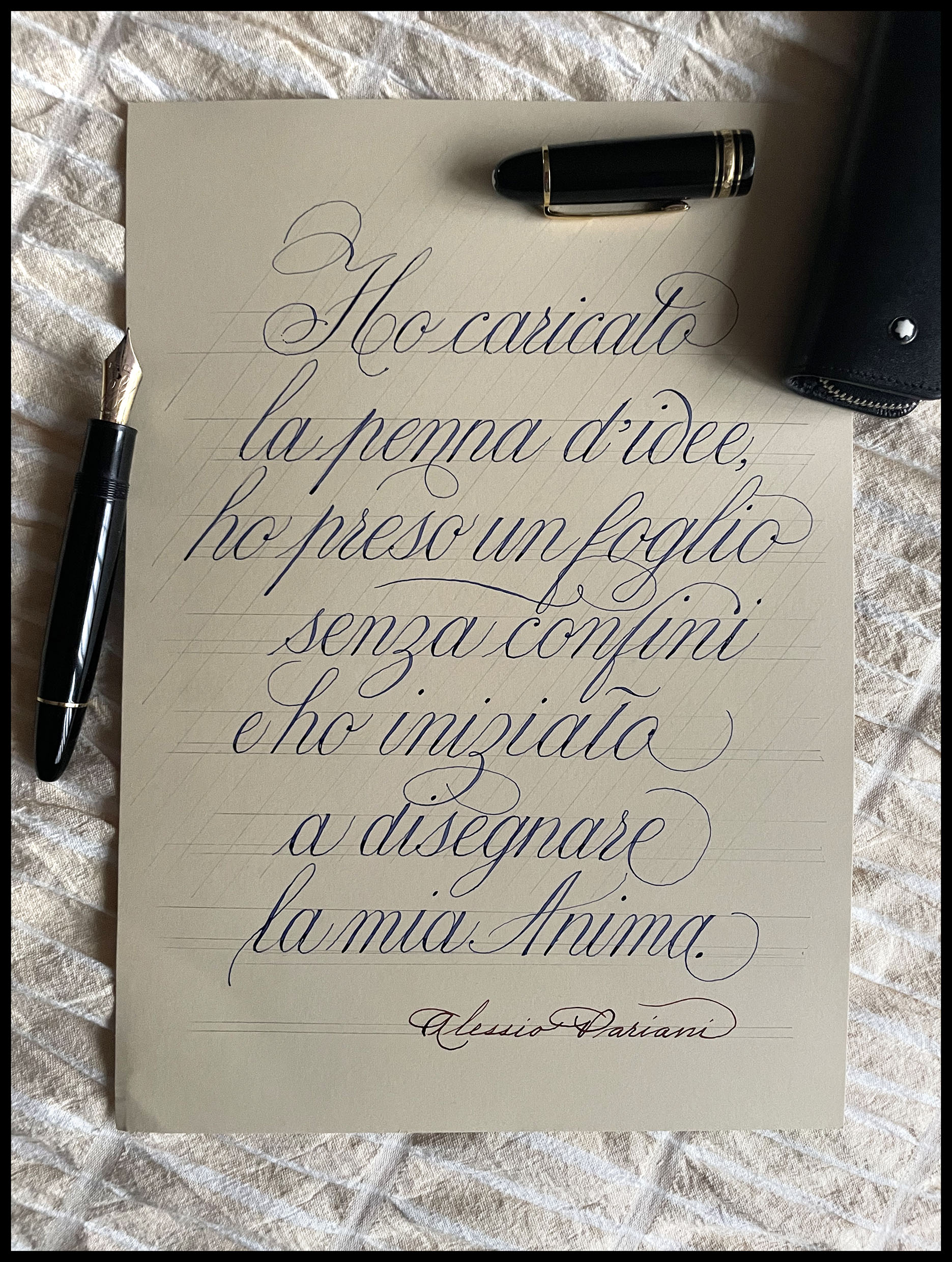 Montblanc 149 Calligraphy con inchiostro Blue Permanent di MB su carta Fabriano Colore da 185 grammi.