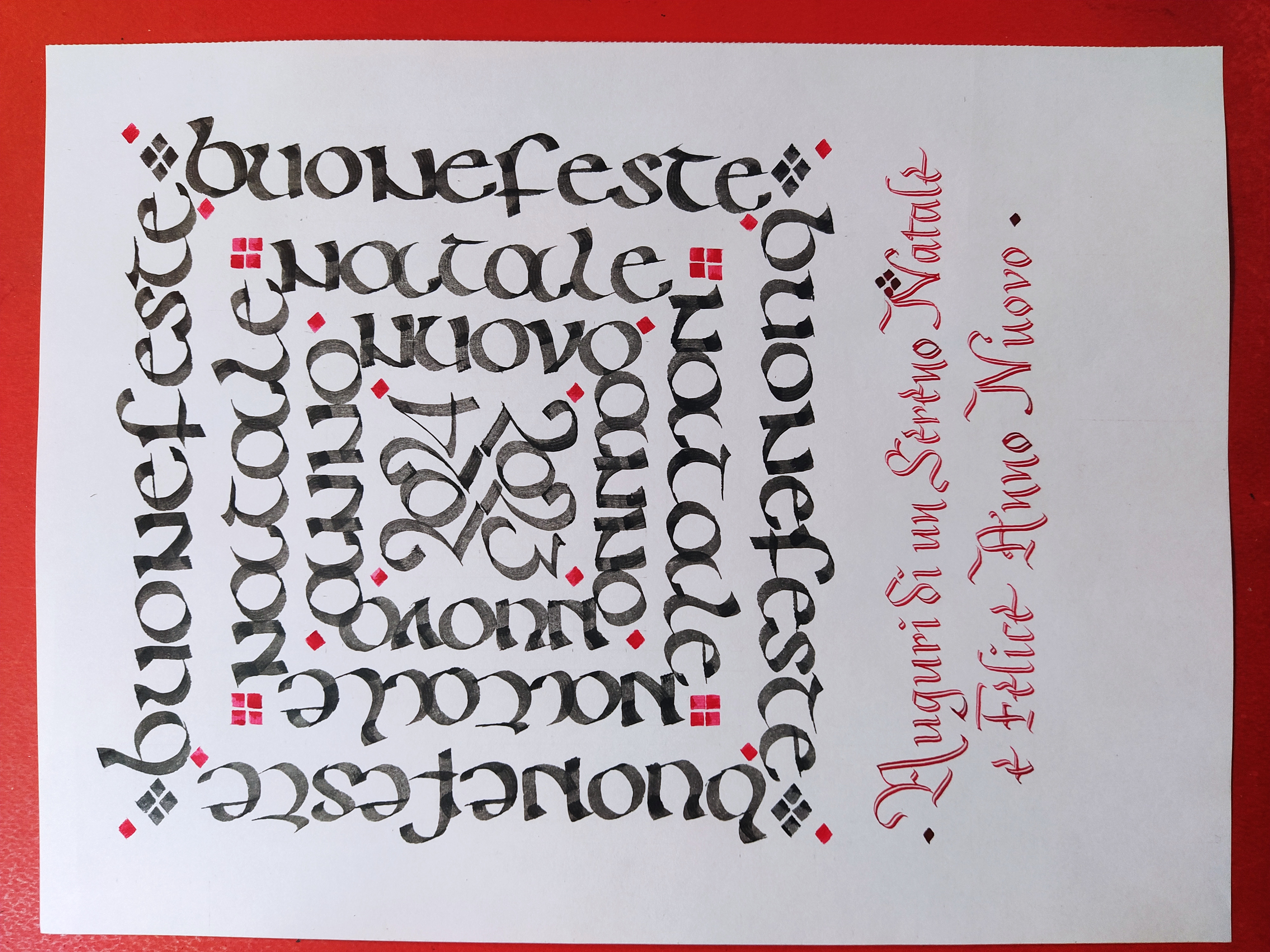 A seconda di carte e inchiostri, trovo che il pennino della Calligraphy esegua al meglio il Copperplate (per quel so fare io) con l’altezza-x compresa tra 5 e 9 millimetri.sansenri ha scritto: ↑martedì 12 dicembre 2023, 15:11 grazie del tutorial Francesco, interessante questa produzione in serie di foto augurali!