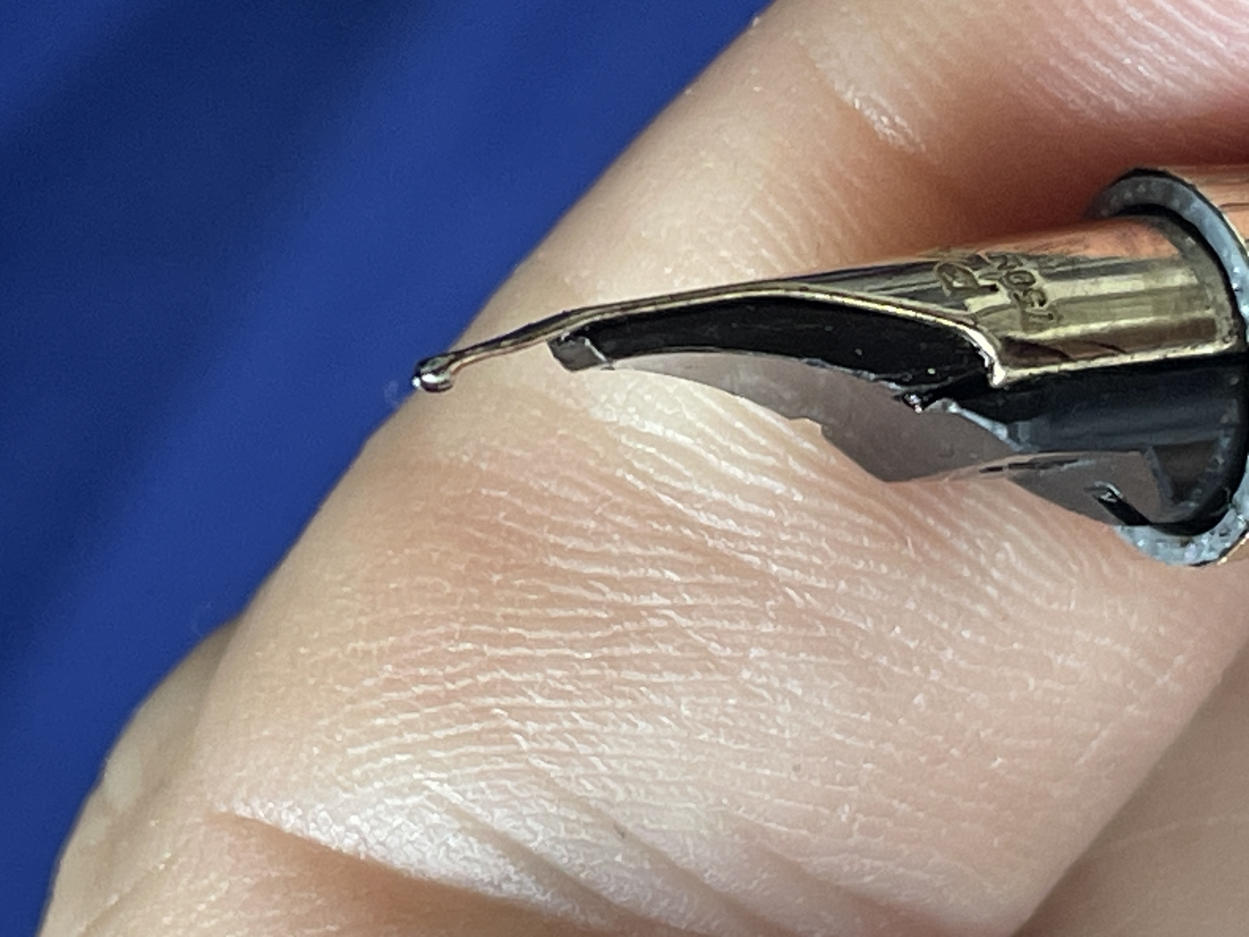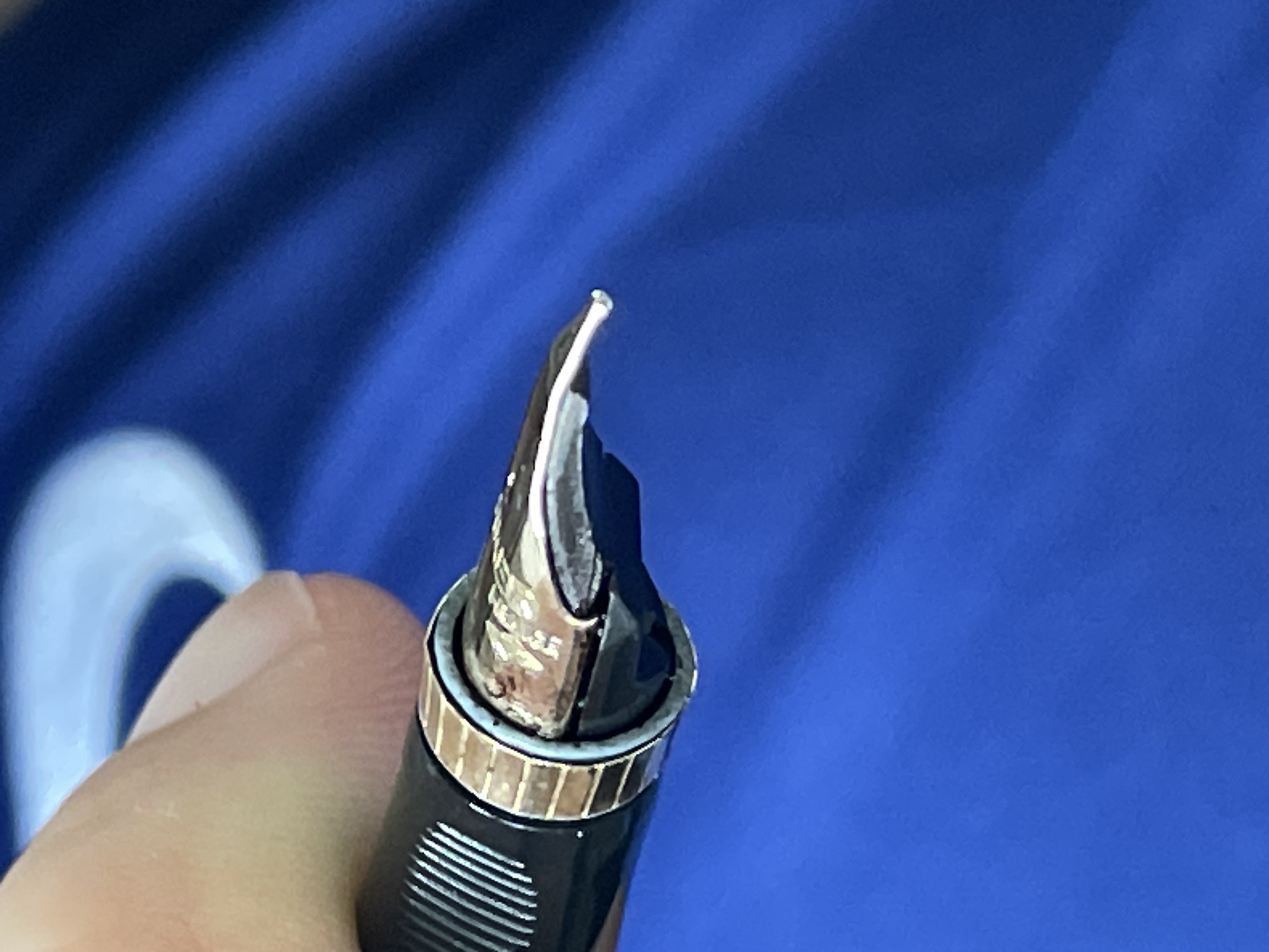 Non ricordo se vi ho detto che ahimè durante la pulizia il pennino è caduto di punta, piegandosi. Ho provato ad aggiustarlo come potevo, i rebbi sono leggermente disallineati, credo che una persona pratica e con esperienza possia riuscire a sistemarlo.