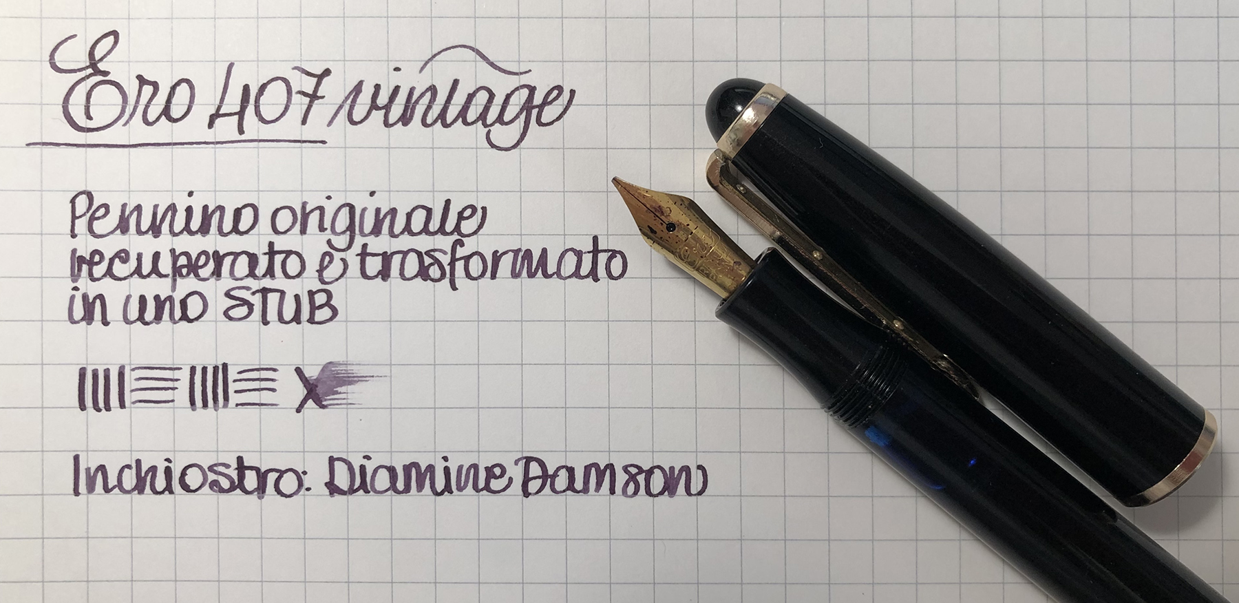 Ho limato il pennino originale, corroso, e mi è uscito uno stub decoroso, quasi un italico direi.