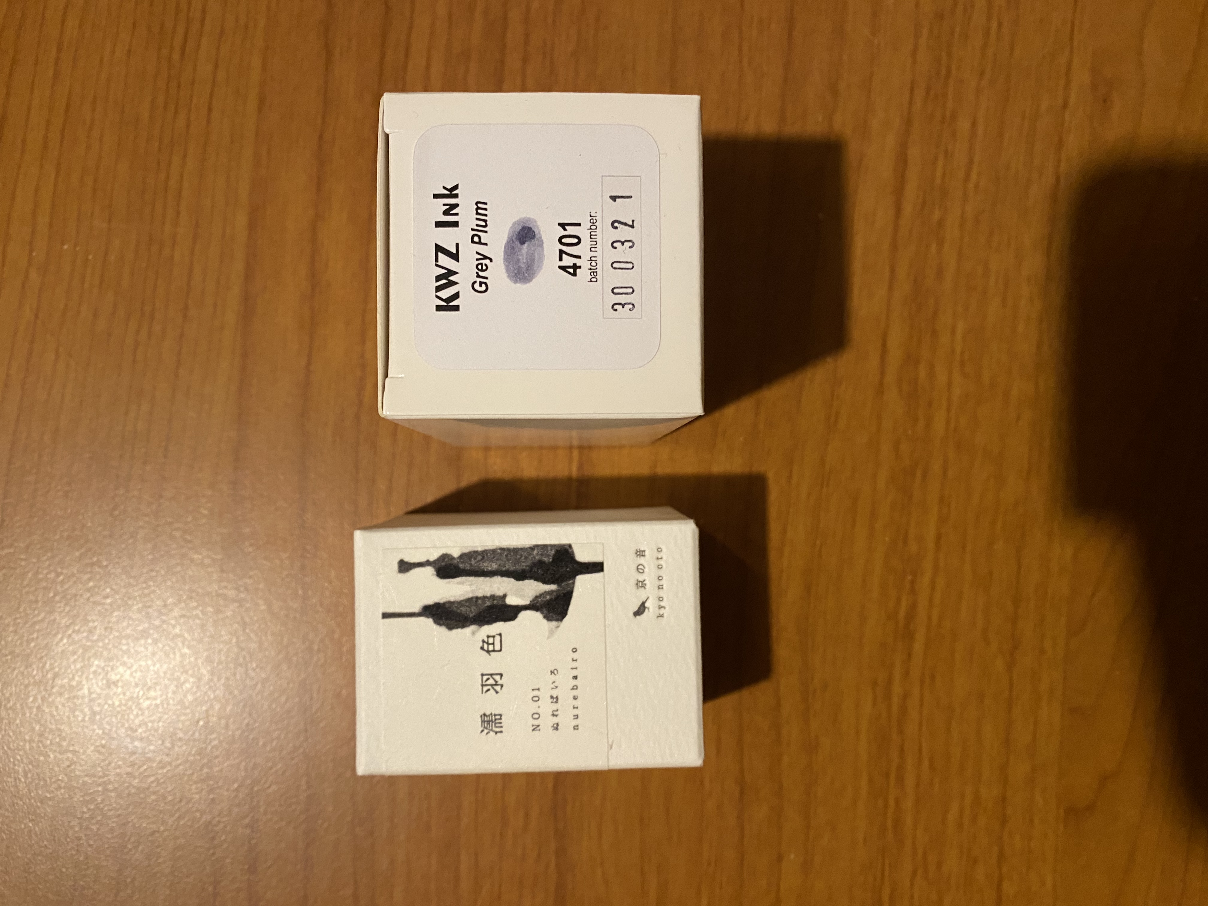 Oltre al nero giapponese (nonostante non ami particolarmente questo colore, dovrò prima o poi provarlo ... ne ho altri due di quella casa e sono entrambi particolarmente belli) vedo che hai acquistato il Gray Plum di KWZ che è, a mio modesto parere, un ottimo prodotto e con una tonalità che ti stupirà. Delicato ma ben visibile, non slavato. Dalle mie parti viene spesso ospitato da una Capless con pennino fine. E poi l profumo ...