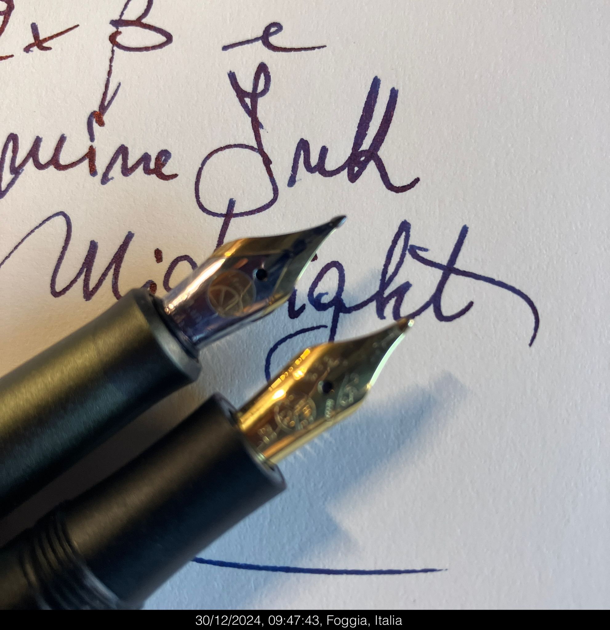 In effetti il doppio broad che ho montato sulla Kaweco non ha il tratto di un pennarello con la punta a scalpello, lascia un segno molto piacevole alla vista, forse anche merito dll'inchiostro usato.![]()