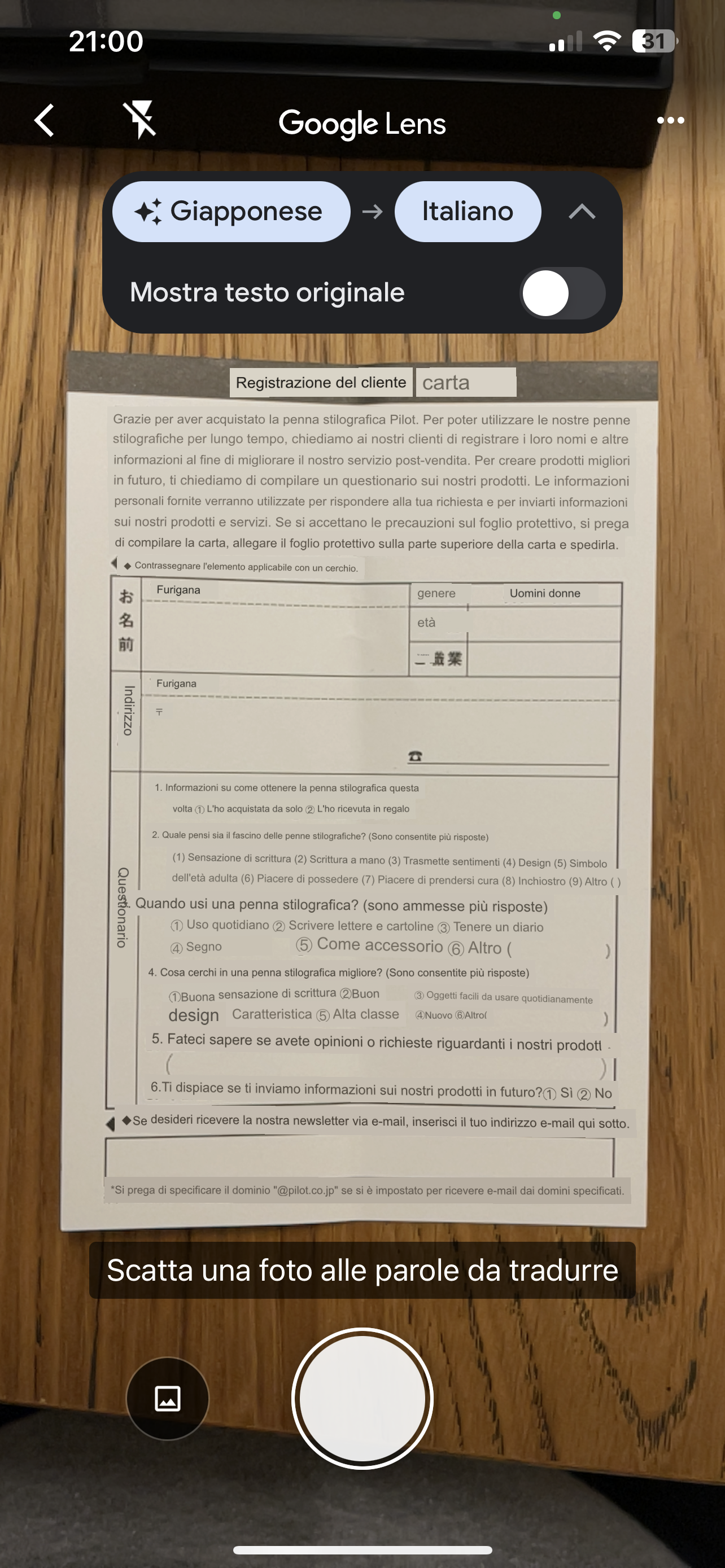Pilot 743 pennino Fa. Samplicemente perfetta! Trovo anche simpatico che abbiano messo un questionario da rimandare a Pilot. Allego le foto con la traduzione di google lens.