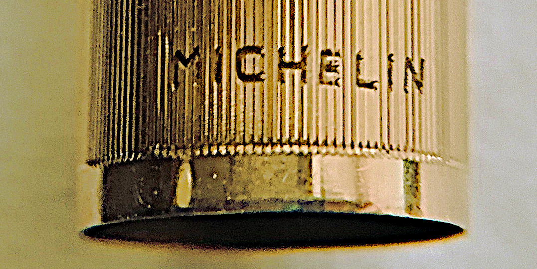 Sui cappucci c'è, in modo assolutamente discreto, la marca Michelin... devo dire che questo non mi ha creato alcun problema, anzi mi piace pensare che sia una penna con una sua storia (qualche alto dirigente della famosa marca francese di pneumatici ? legato alla Guida Michelin dei ristoranti stellati ?).