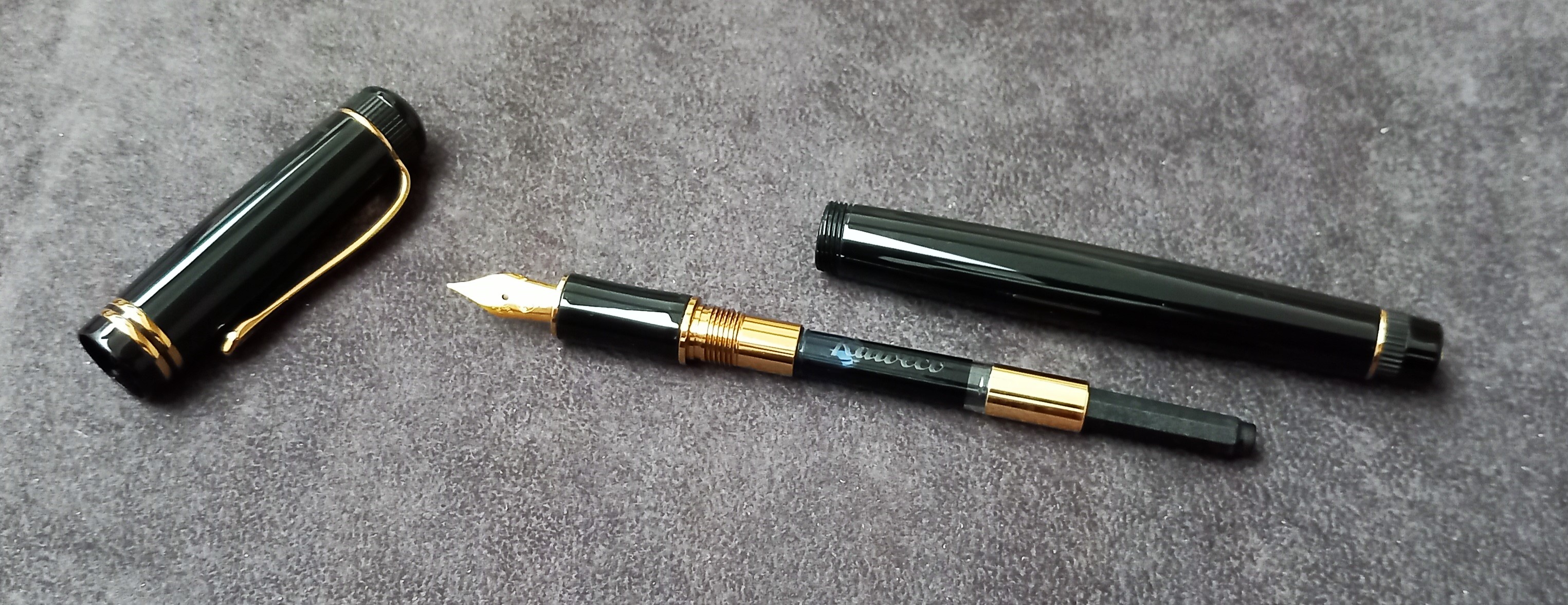 Converter con accenni dorati per la Kaweco Dia2, una delle mie migliori penne moderne, scrittrice perfetta in ogni situazione, con un pennino F in grado di rivaleggiare senza problemi con gli equivalenti giapponesi.