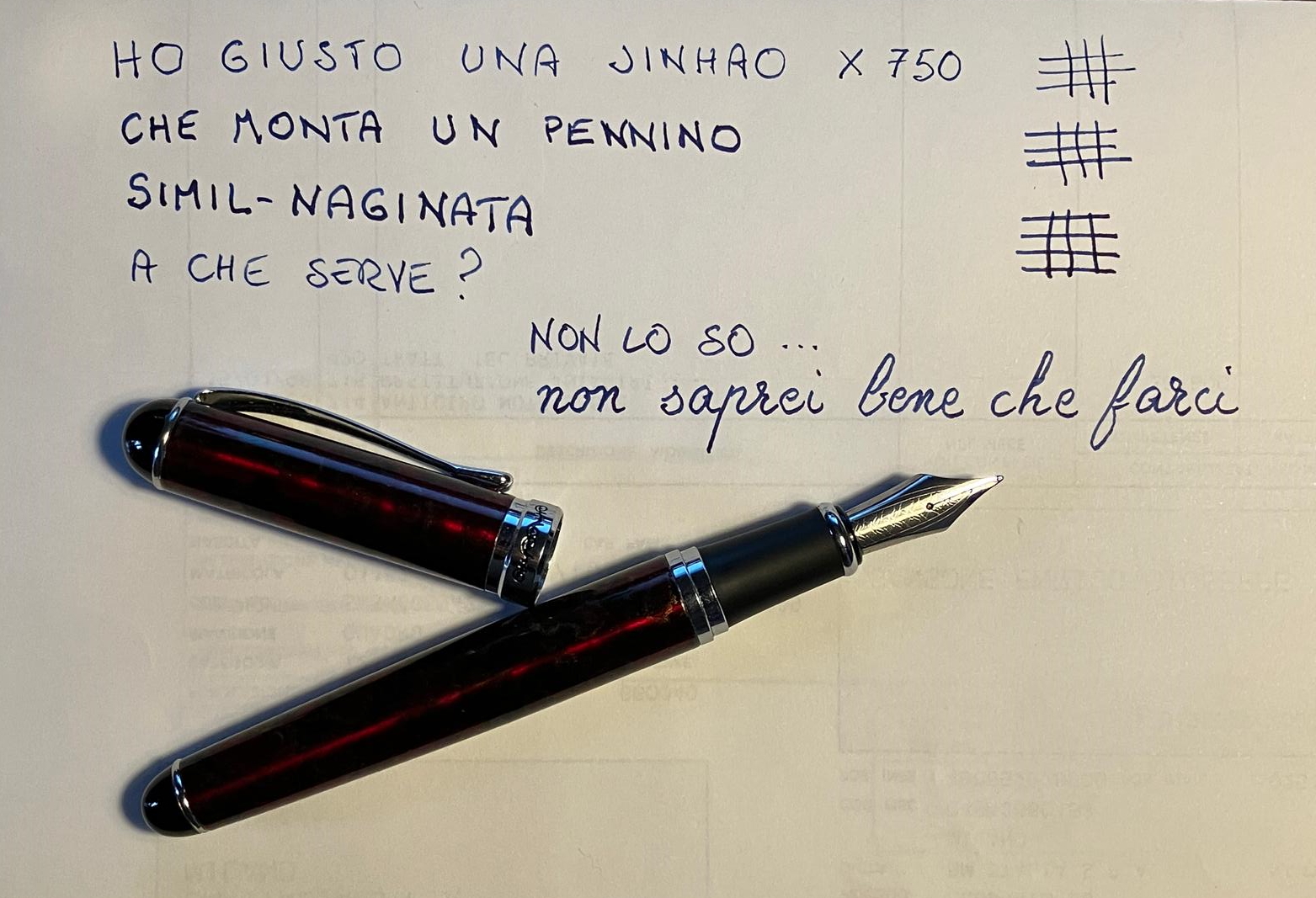 Ho una Jinhao X750, è una delle poche cinesi che tengo perché funziona bene, e l'ho usata spesso per provare pennini differenti.
