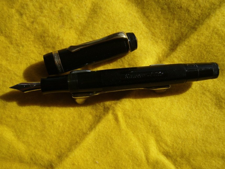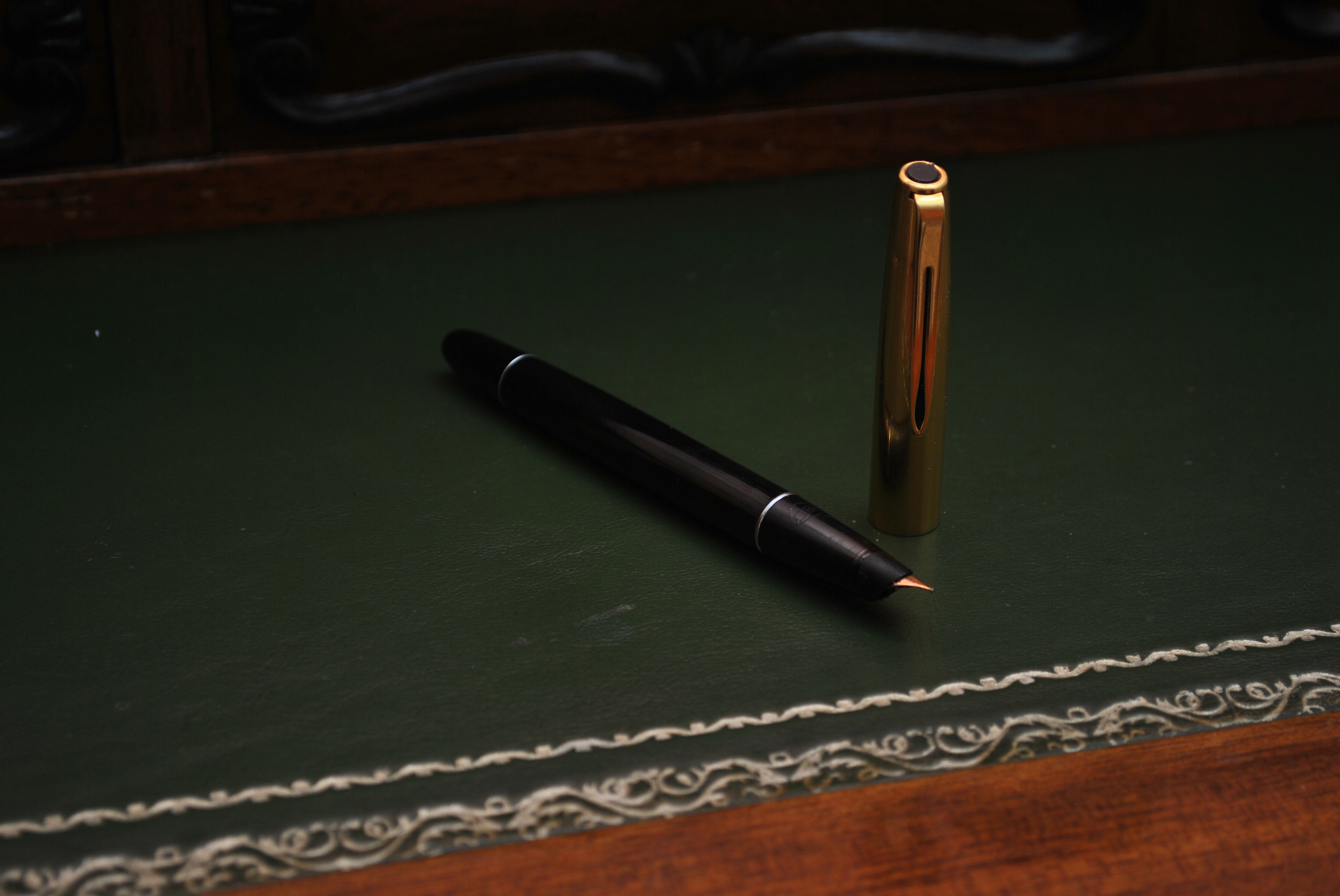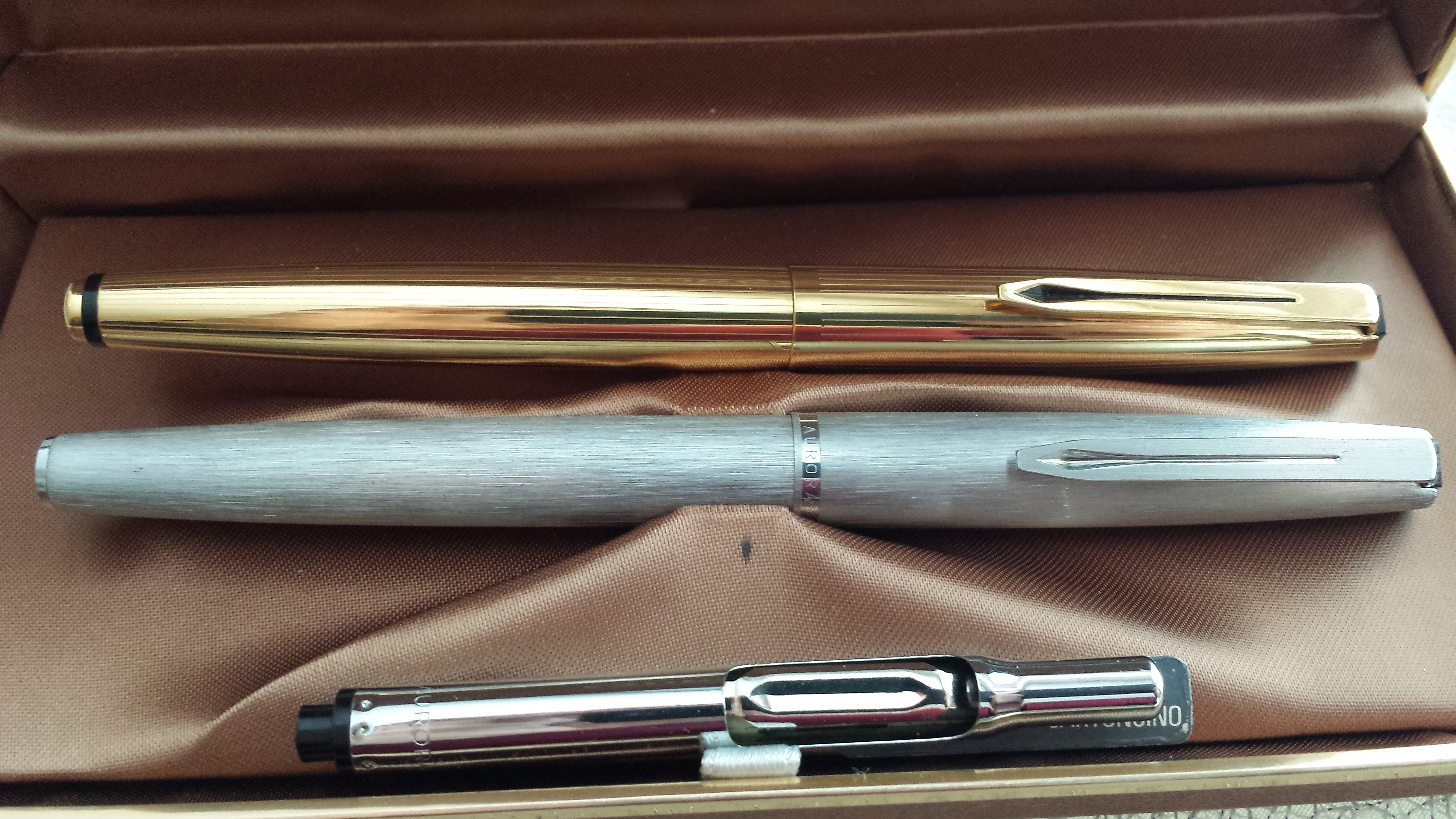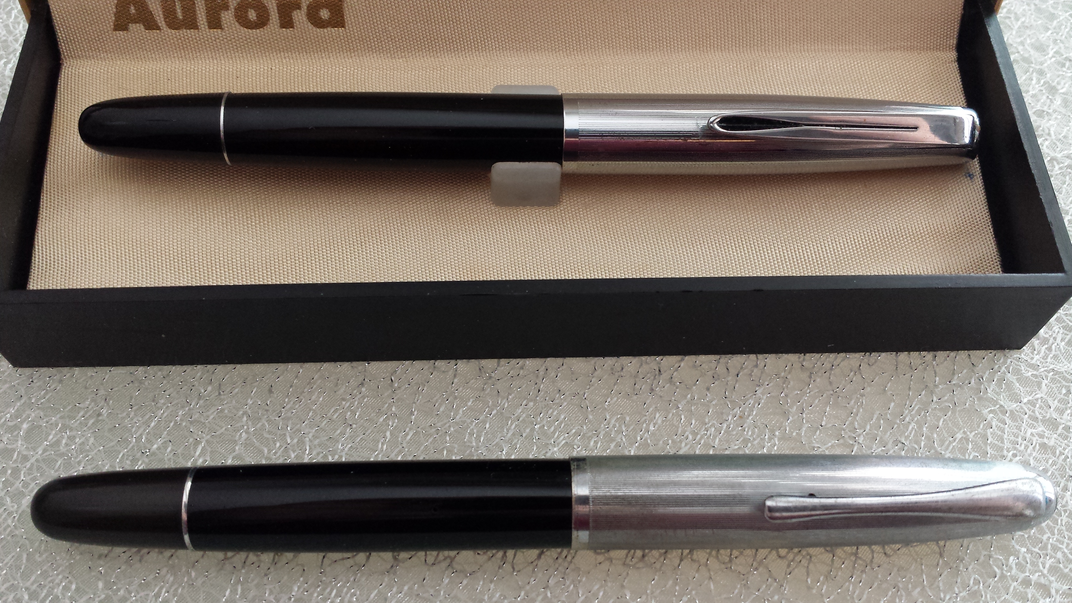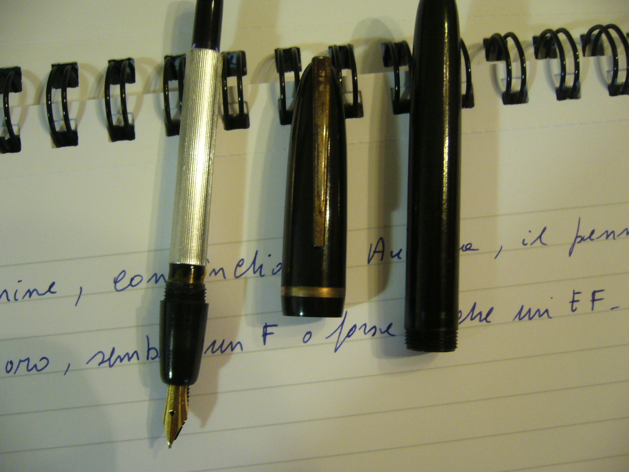 Col tempo ho trovato una Eversharp che praticamente è una copia della 51 ma col pennino in acciaio, caricamento a pulsante di fondo e più sottile; io ho preso il cappuccio che reca la scritta "EVERSHARP 18KR." (se qualcuno avesse idea di cosa significa precisamente il "18KR.") e vi ho sostituito il controcappuccio interno per fargli ospitare la mia 51. Poi ho rubato da Massimo un pennino M molto più consono alla mia grafia ed ora devo dire che mi è molto più simpatica. :D