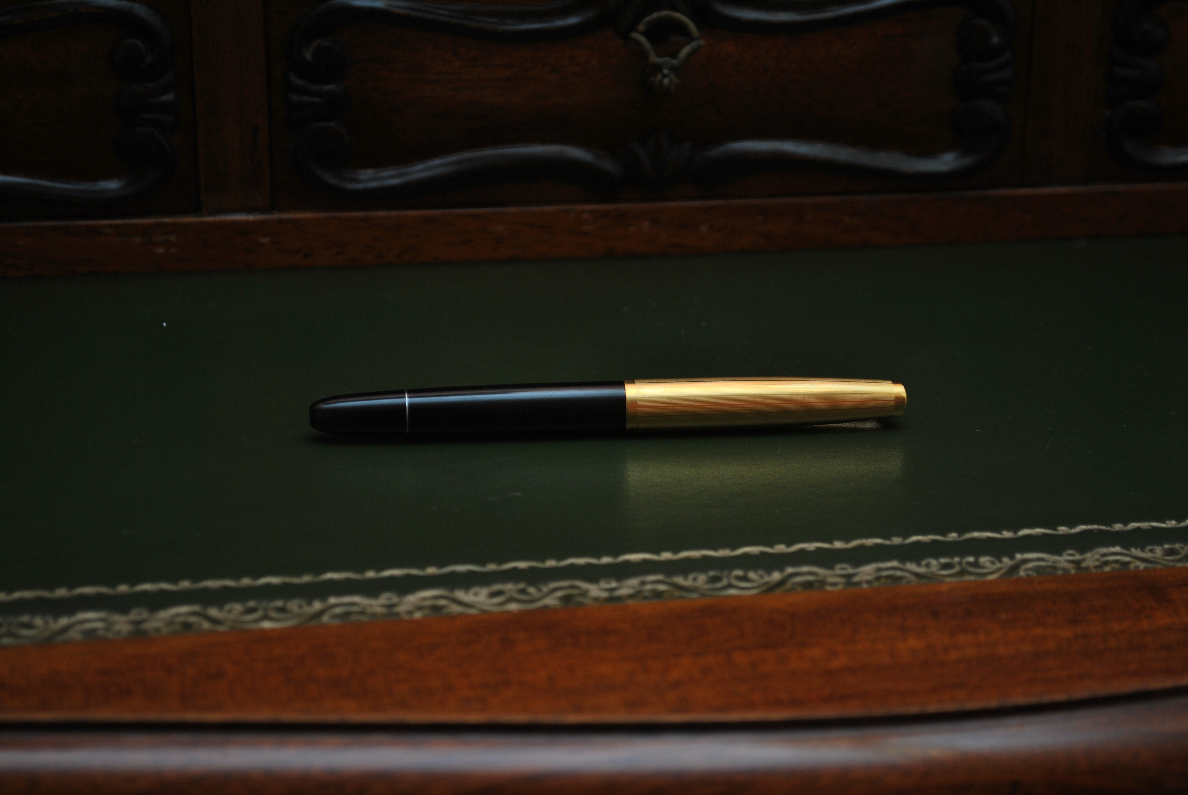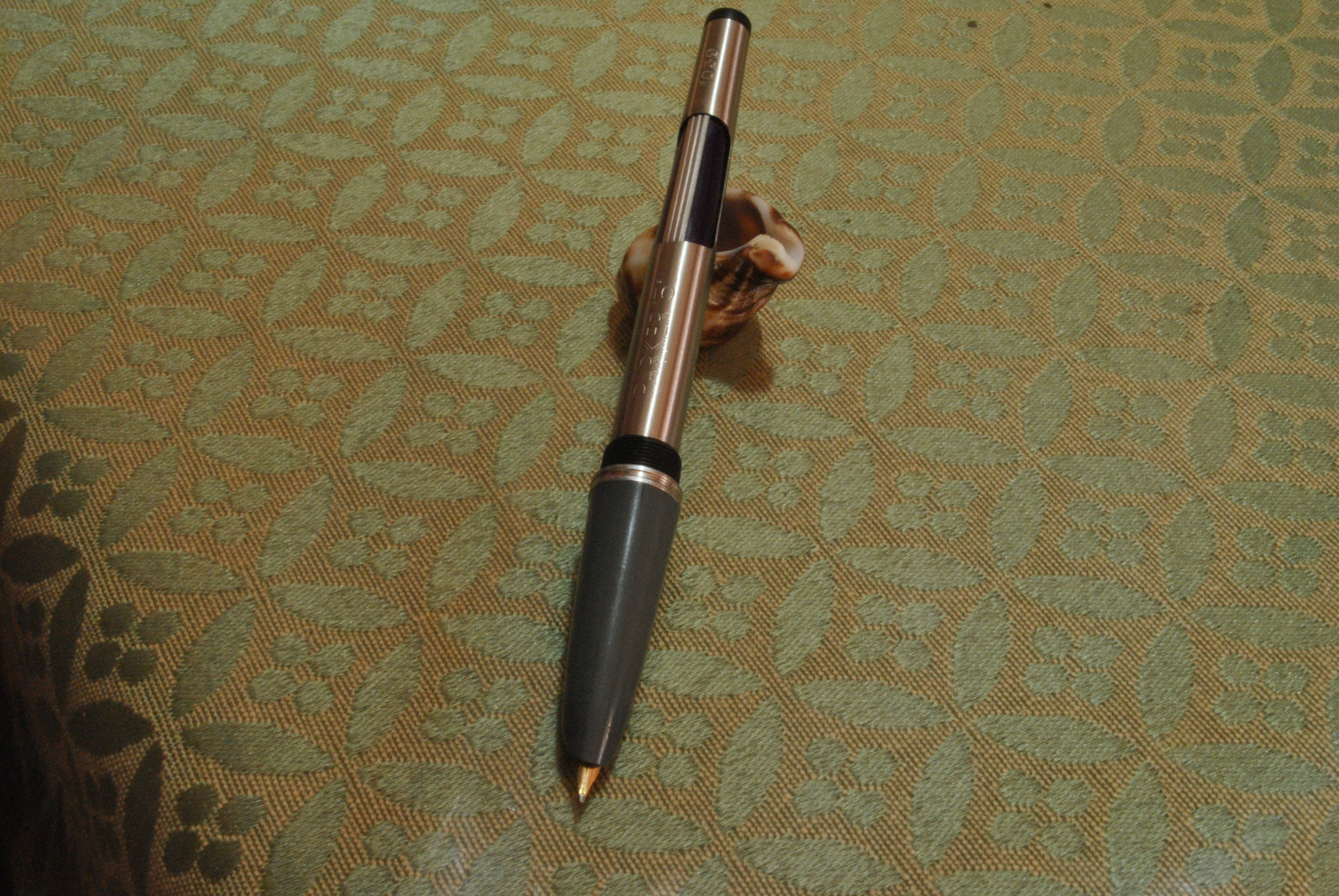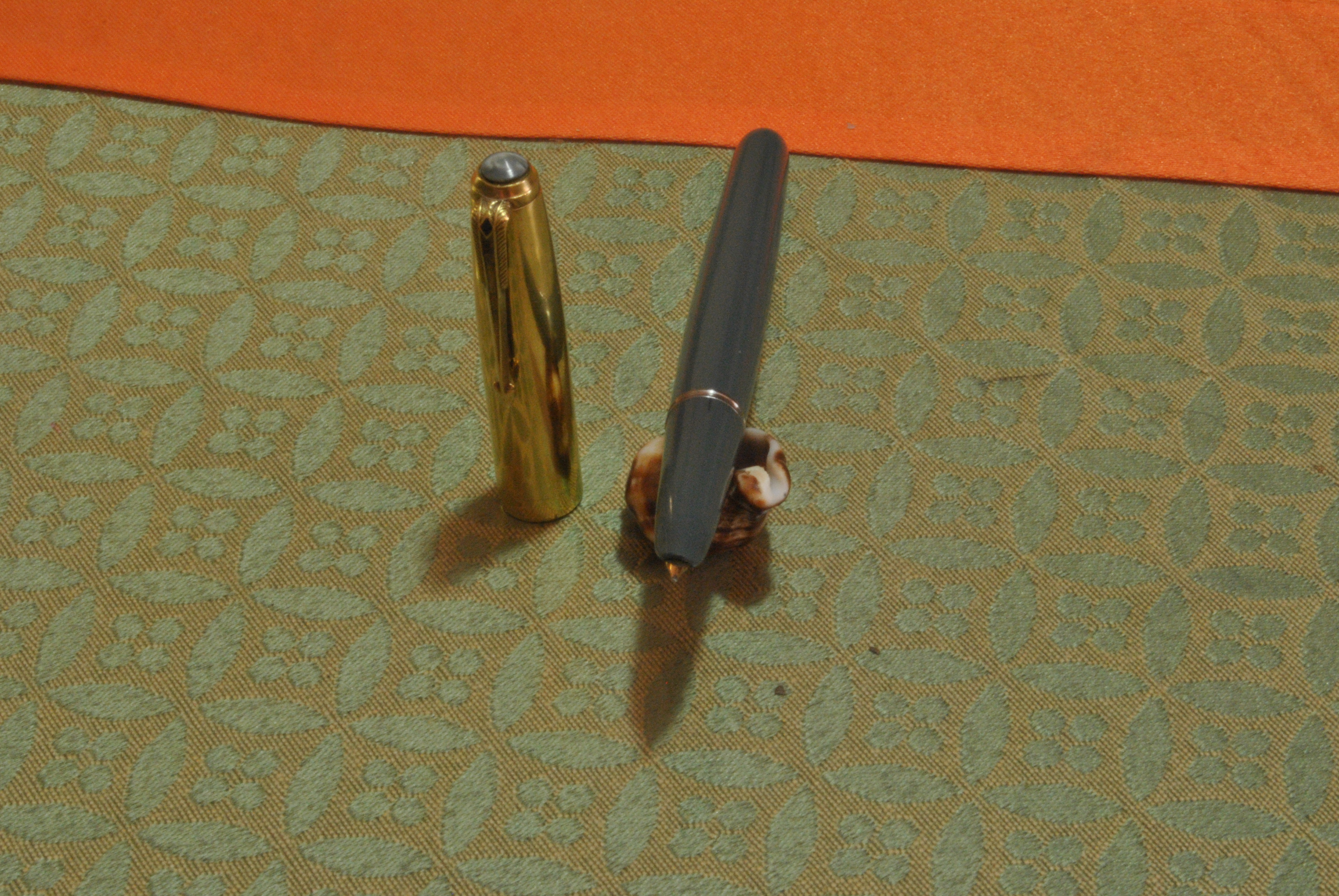 Si tratta di una Parker "51" aereometrica in colorazione Dove Gray. Quando l'ho acquistata aveva il puntale spezzato, il cappuccio era quello di una Parker "21" che tra l'altro non aveva nemmeno il gioiello e aveva un pennino B che non m'era per niente simpatico.