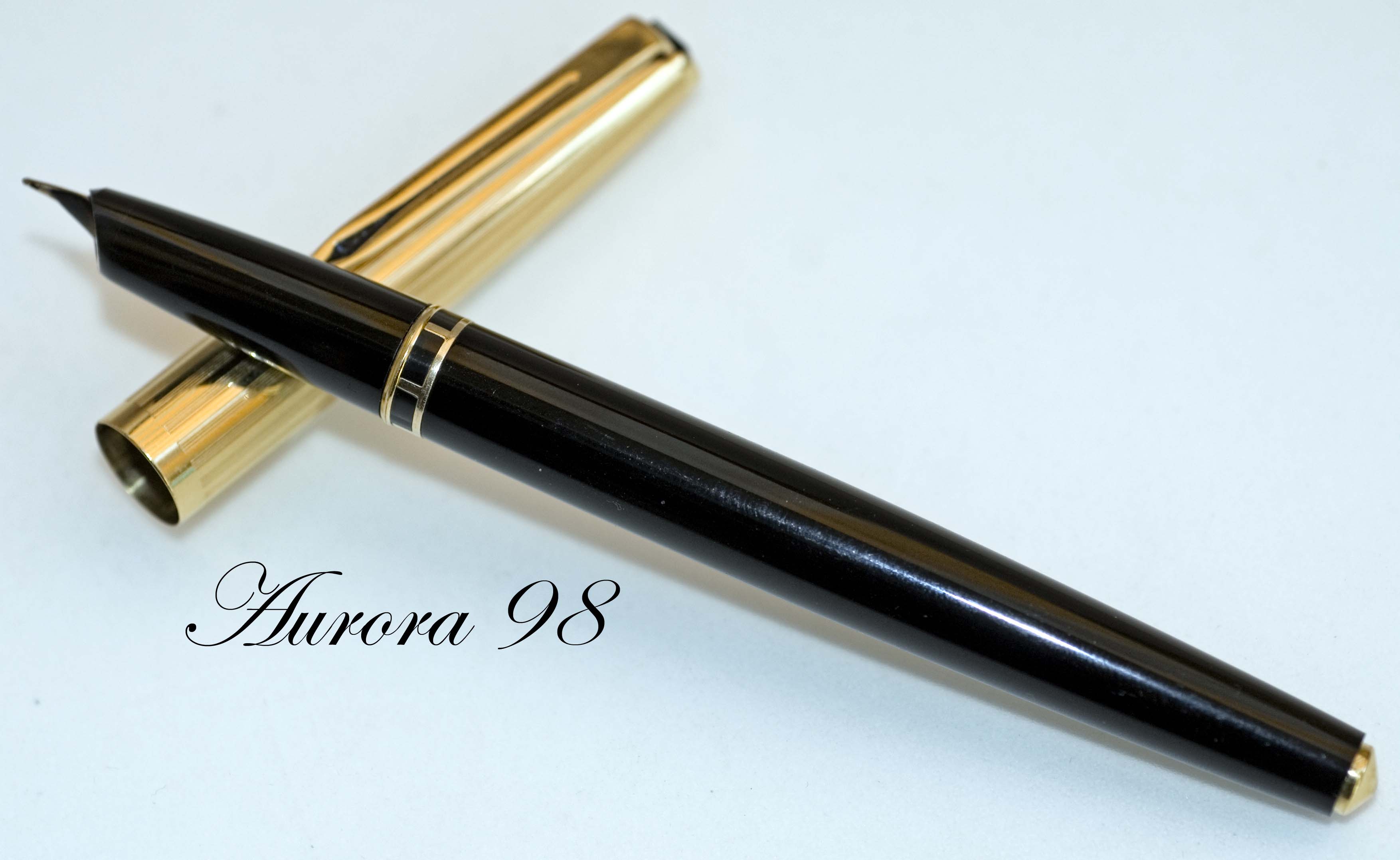 Infine le 98, in particolare la placcata oro a pistone (magnifica, una vera N.O.S.) e la “Internazionale” a cartuccia/converter: