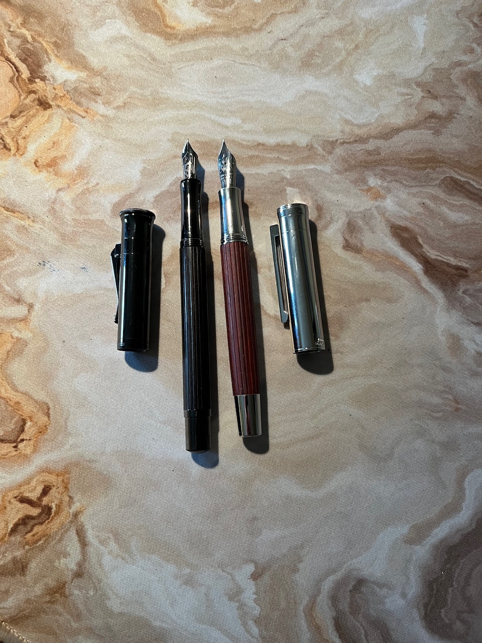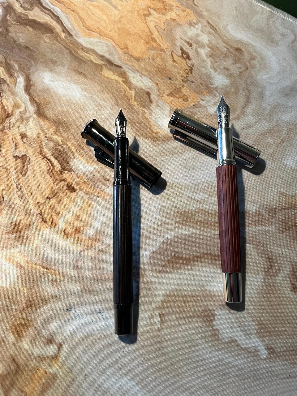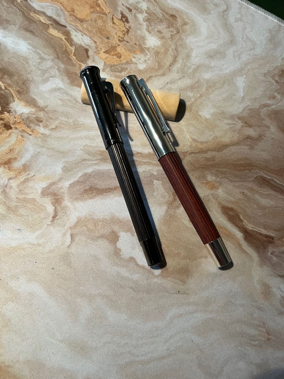 Quando ho comprato la Graf von Faber Castel Classic ero indeciso tra la Macassar di legno scuro e con parti metalliche brunite e quella con pernambuco che ha legno più chiaro e parti metalliche placcate platino, ho optato per la prima perché la trovo più elegante però mi era rimasta la voglia di quella più chiara ma non quella di spendere altri 600 euro per una penna sostanzialmente uguale e nella quale cambia solo il colore.