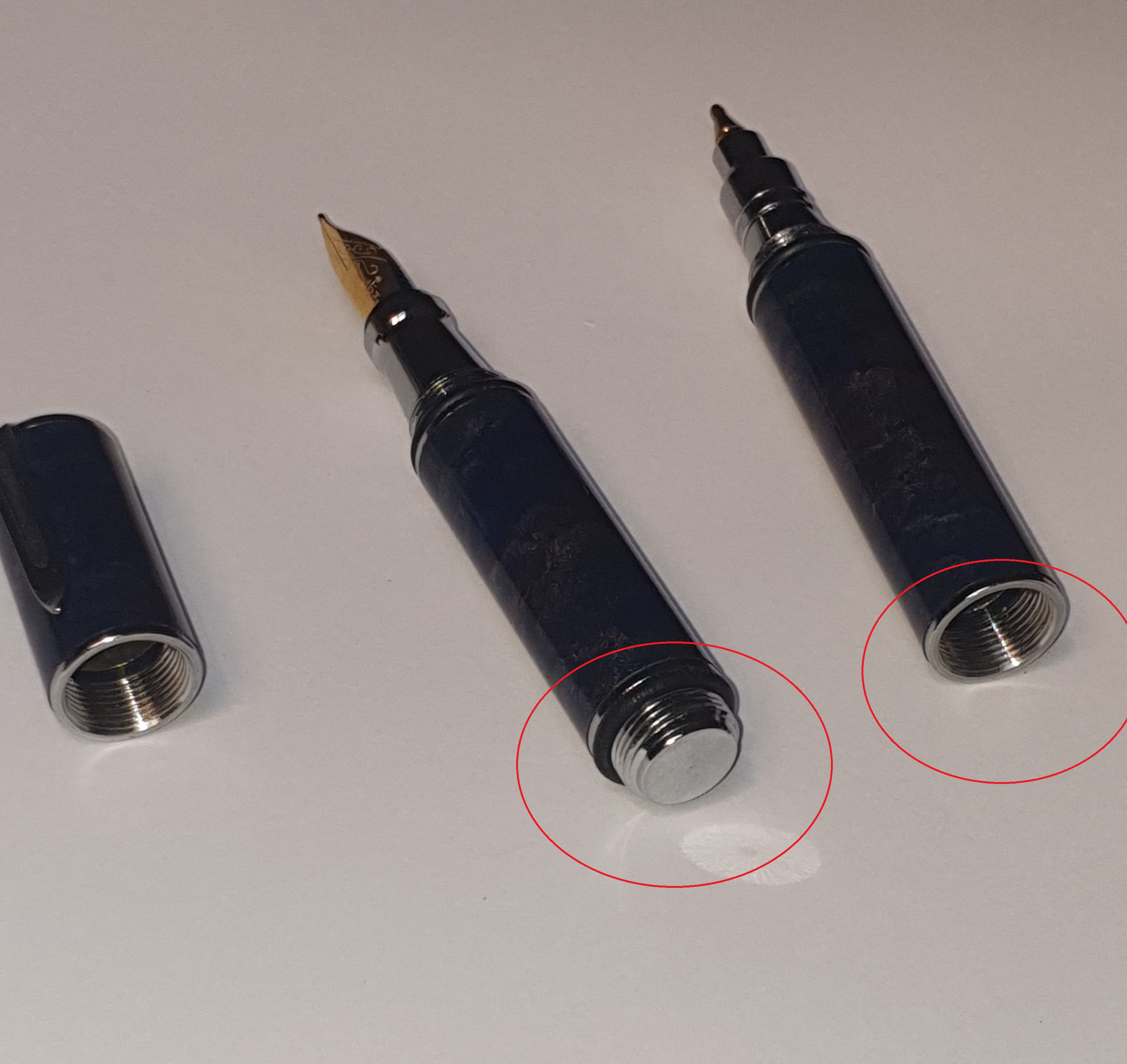 La sezione biro può prevedere un refill corto ma la sezione stilo deve lasciare abbastanza spazio per la cartuccia di inchiostro.