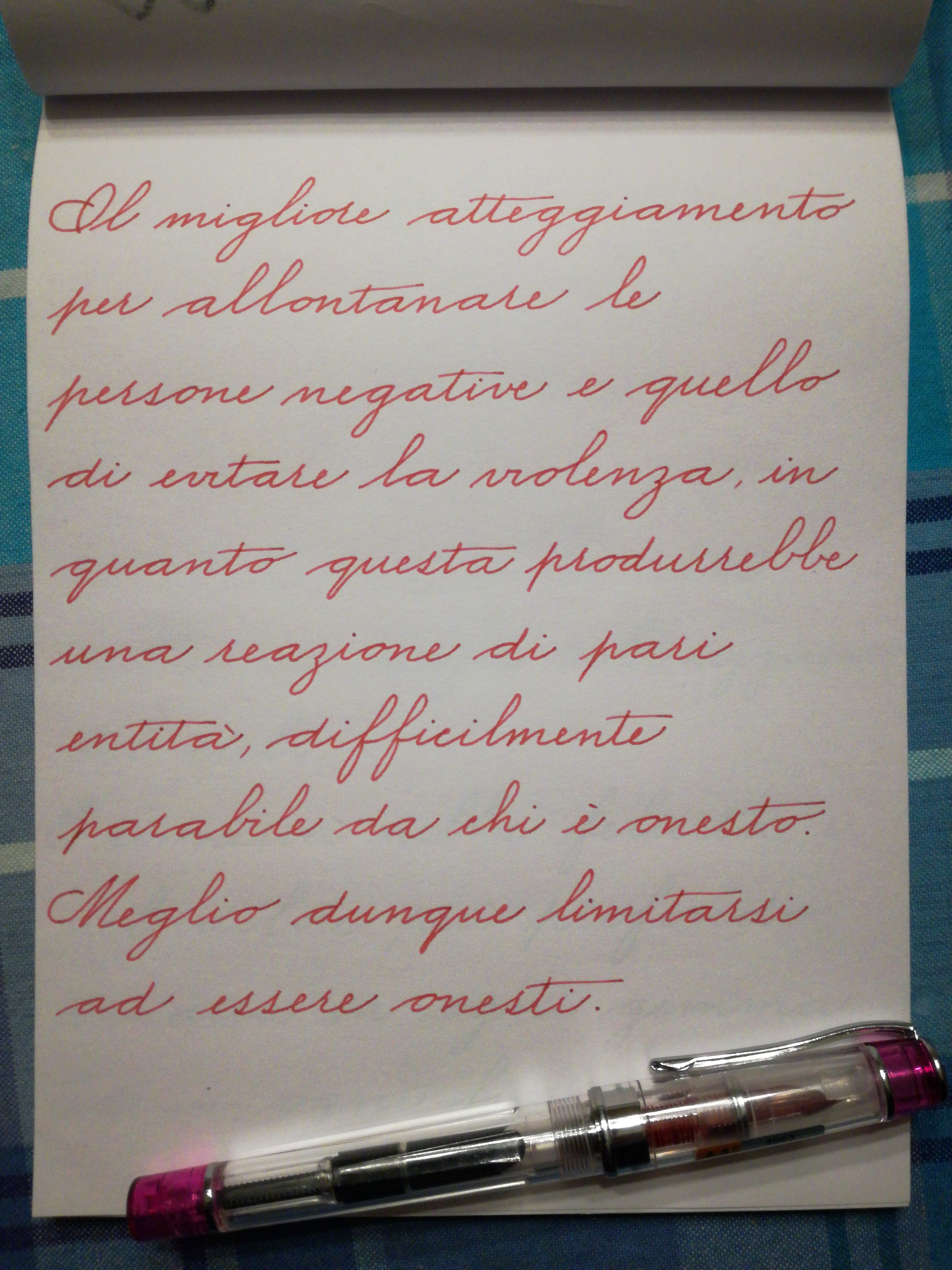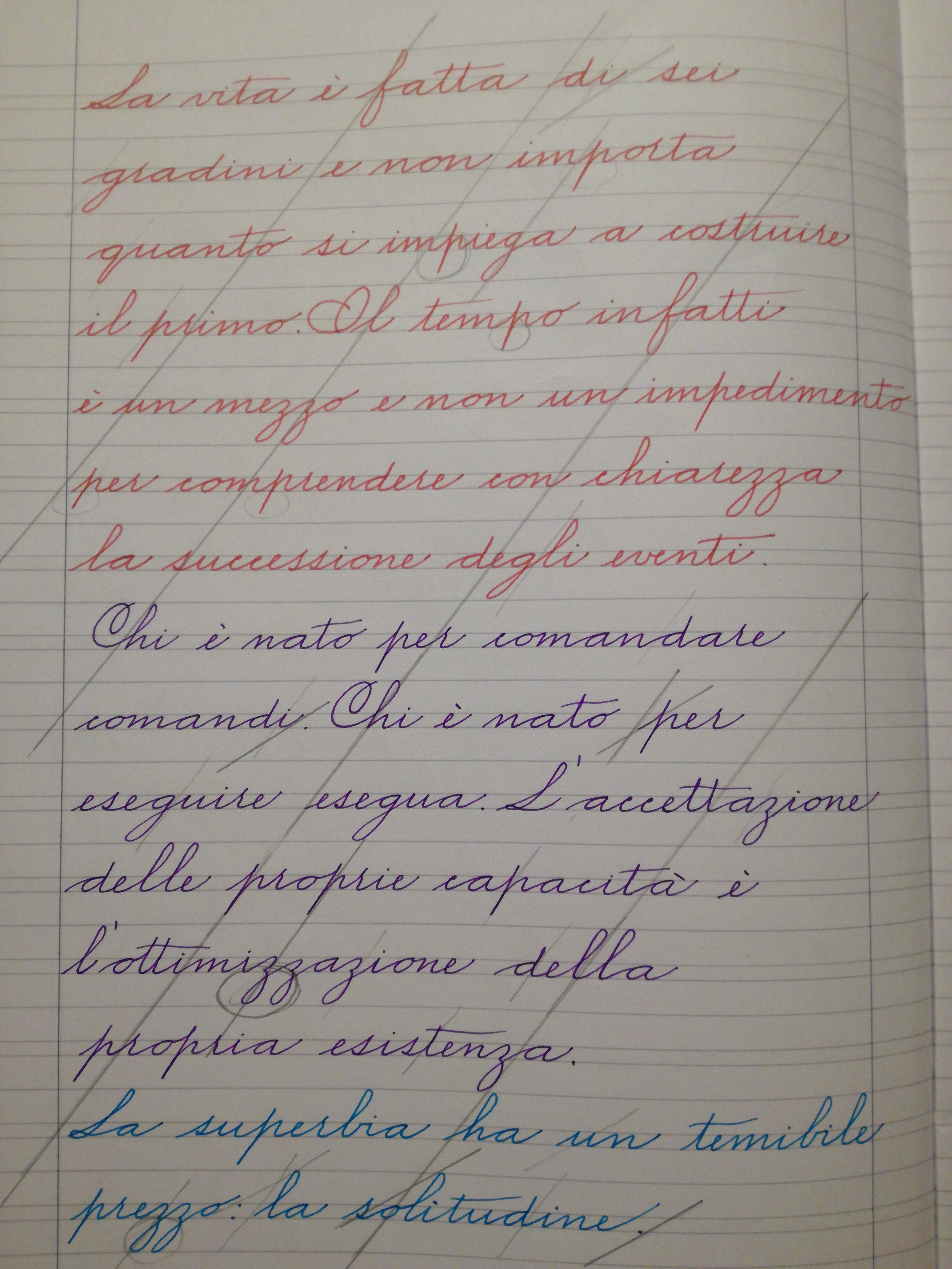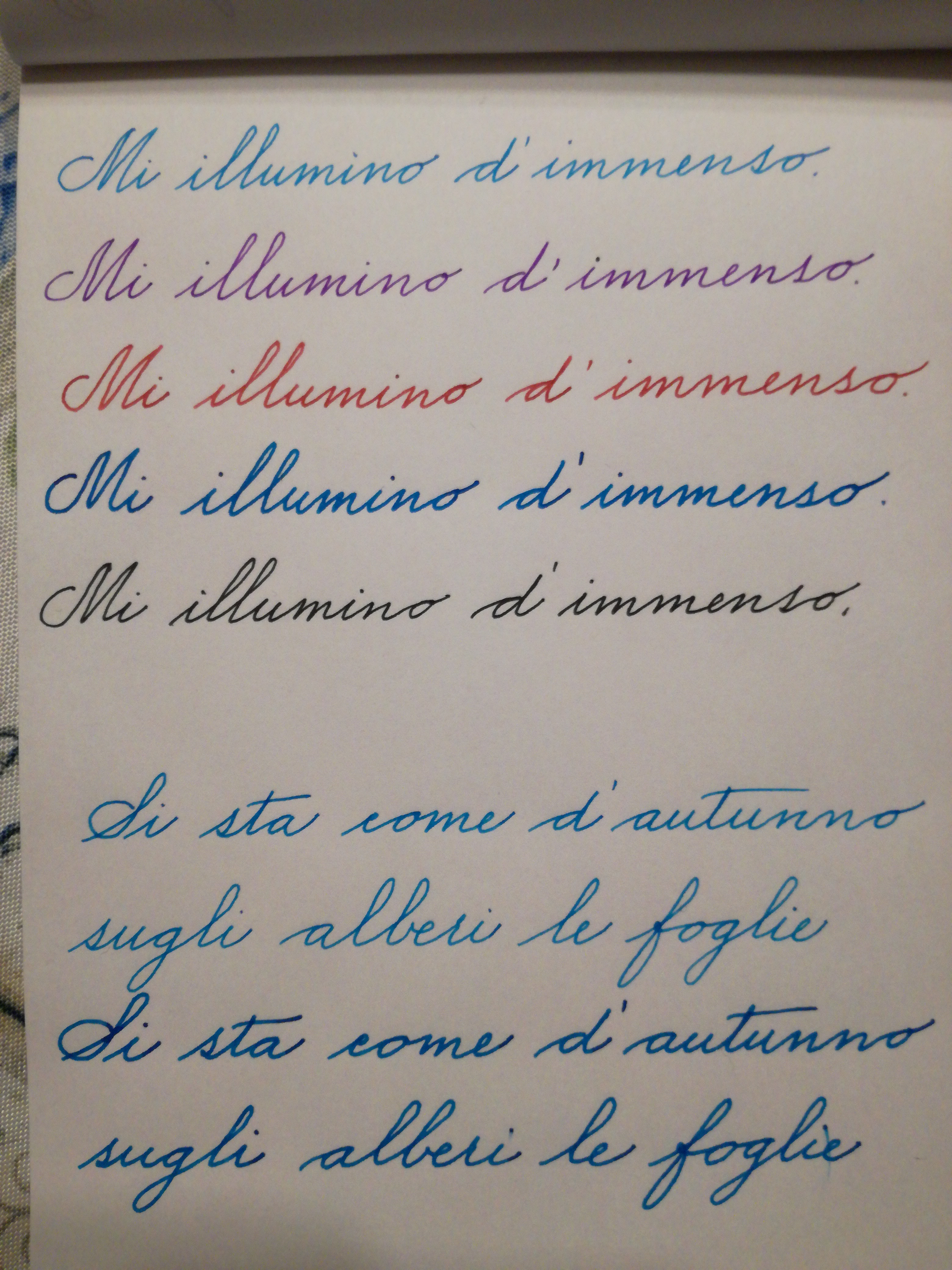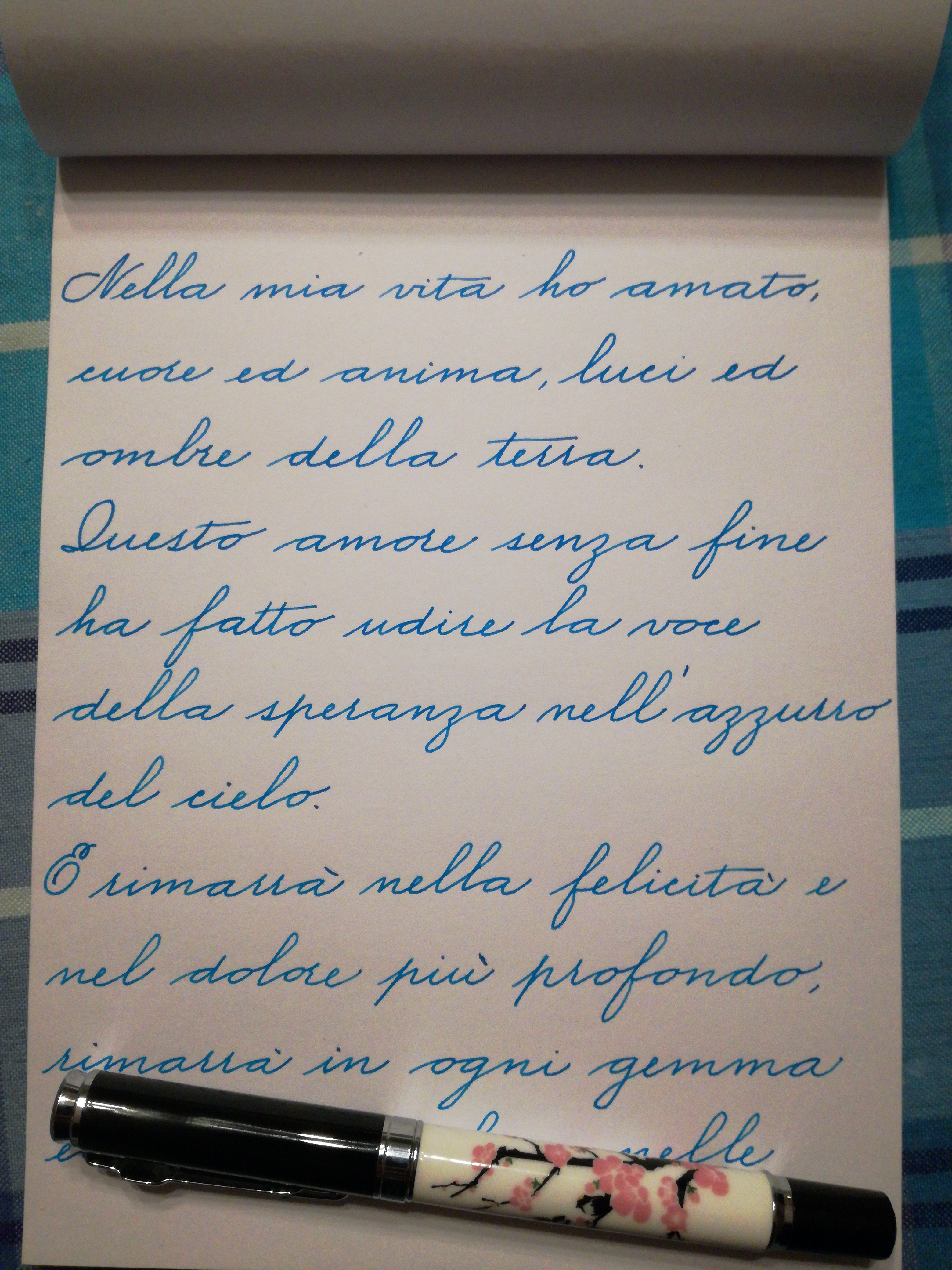 Presa dal corsivo inglese ho tralasciato questo stile ma stasera avevo voglia di qualcosa di più morbido. Caso ha voluto che avessi due penne caricate con lo stesso inchiostro pelikan...quando si dice è questione di pennini!