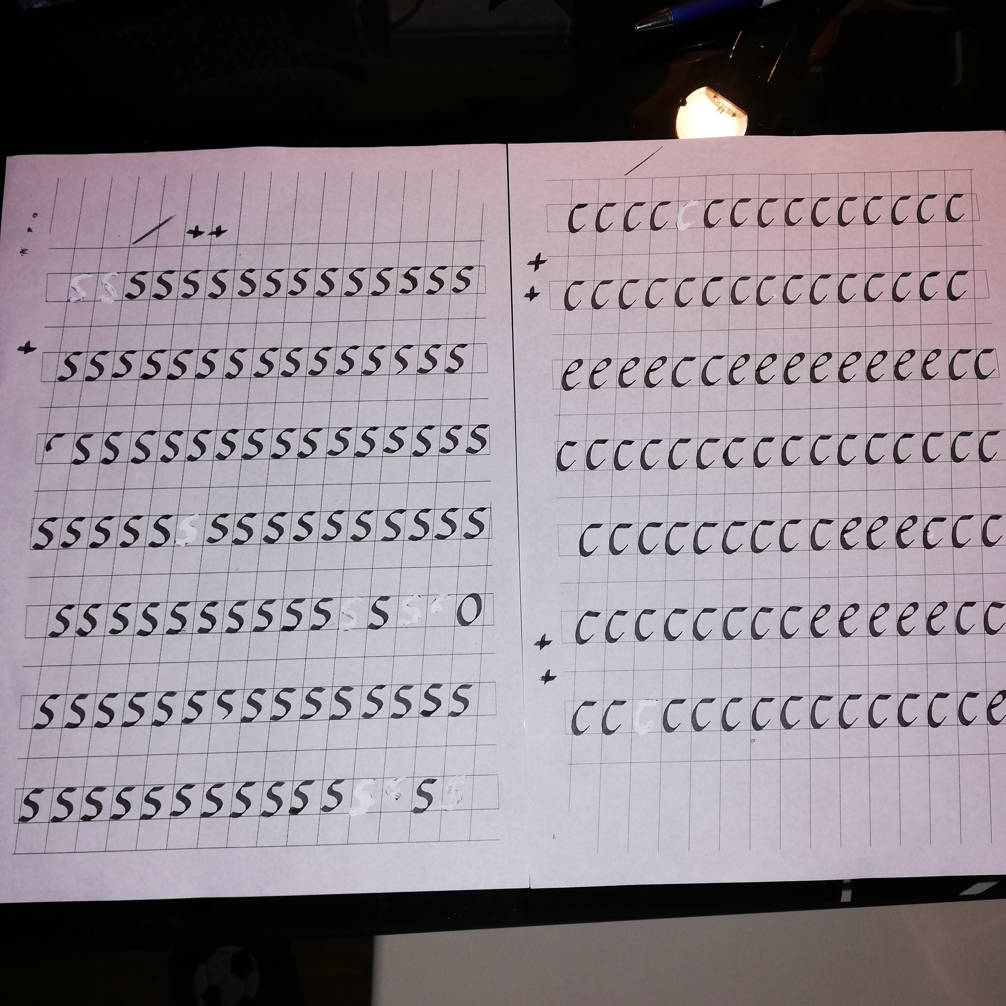Esercizi lettera s fatta in 3 pezzi secondo rynold prime due line penna platignum vintage left hand 1963...altre righe osmiroid left hand... Alcune s le ho fatte piu piccole apposta....