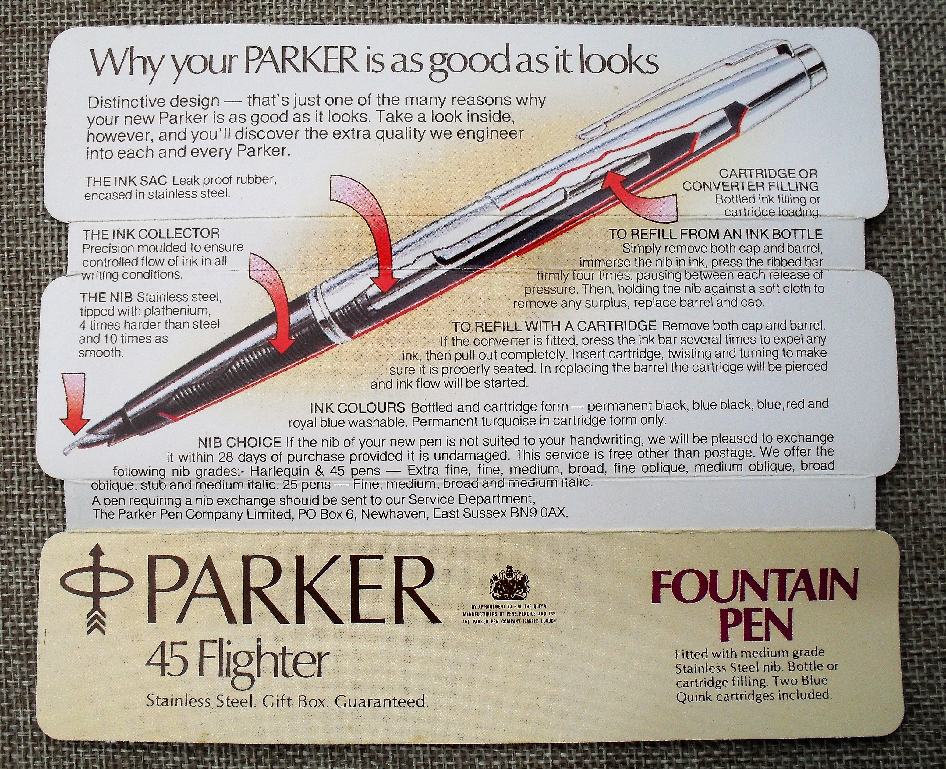 Sì la Parker 45 è veramente una penna dalla grande affidabilità, ho preso una Custom con pennino in oro M da affiancare alla Classic… una veloce pulizia da inchiostro fermo da almeno 30 anni e via, scrive sempre senza incertezza.