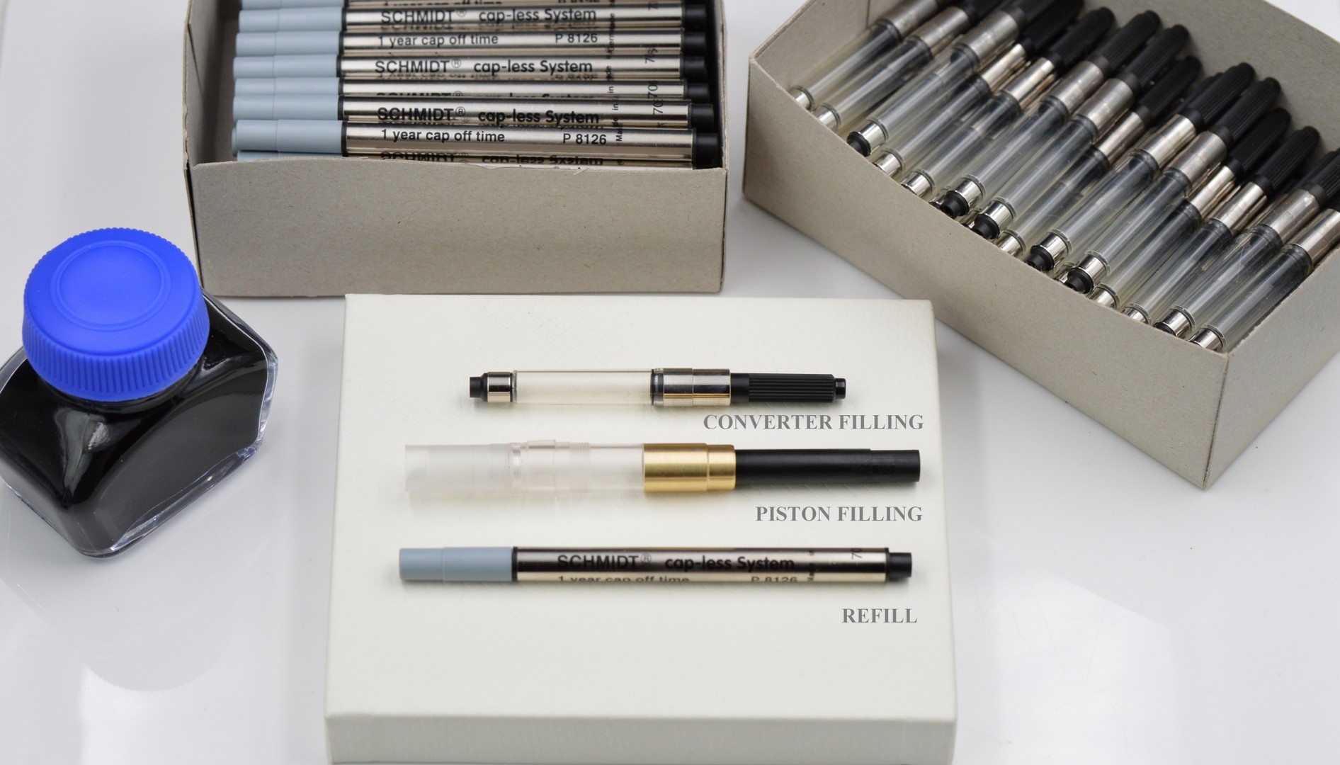 ink: Aurora*Delta*Diamine*J.Herbin*Montblanc*Noodler's*Leonardo*Omas*Pelikan*Pilot Iroshizuku*Sailor*Visconti*Waterman