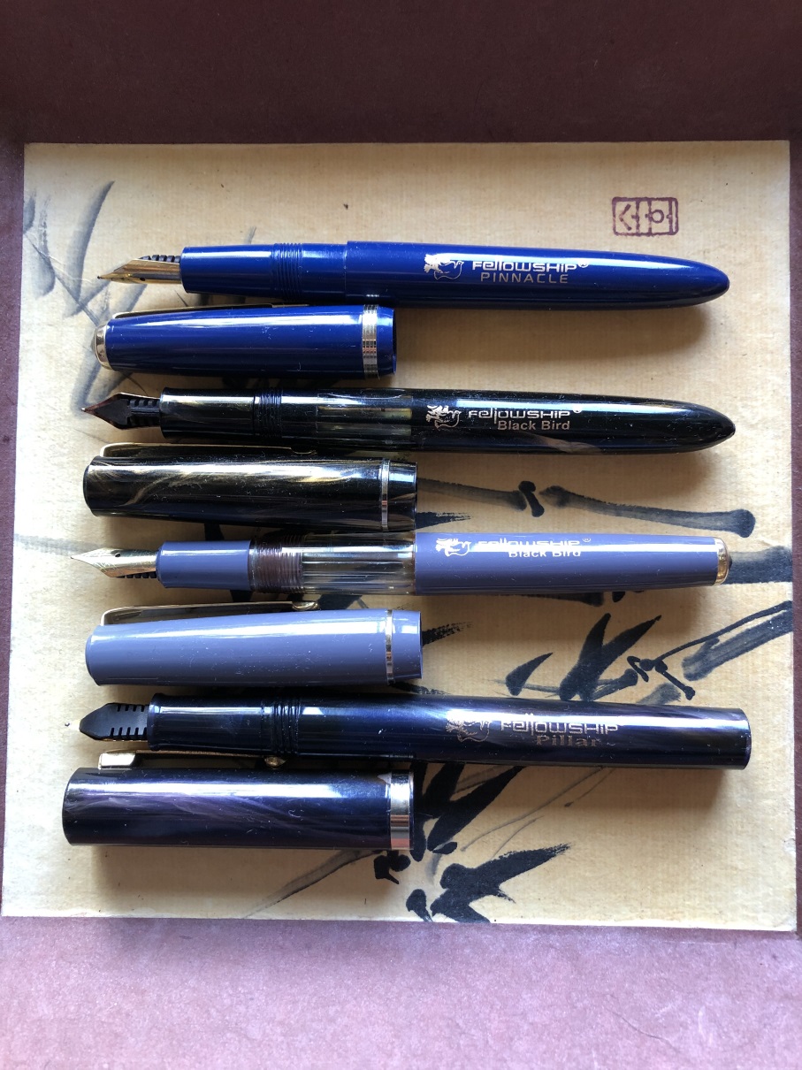 soluzione per le cartucce: applicare smalto per unghie. lo stesso per il converter. per il cappuccio non l'ho fatto, non riesco ad applicare strato sottile senza doppiare la passata successiva. alcuni inchiostri evaporando migliorano: l'inspired blue ha piu' sheen. negli altri casi, aggiungo acqua distillata. e' una penna da inverno..