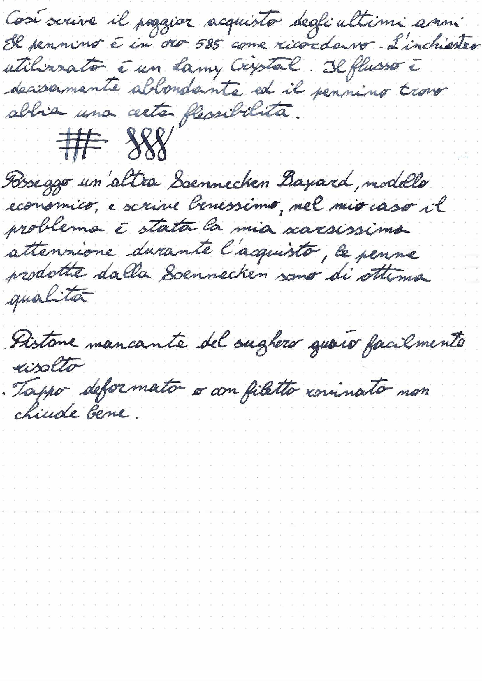 2) La penna è "carta dipendente". Quindi per sfruttare le doti di quel particolare (e perchè no, straordianrio) pennino bisogna porre ben attenzione alla carta che si andrà ad usare. Per carità, vale per ogni penna. Però in questo caso l'errore è esiziale.
