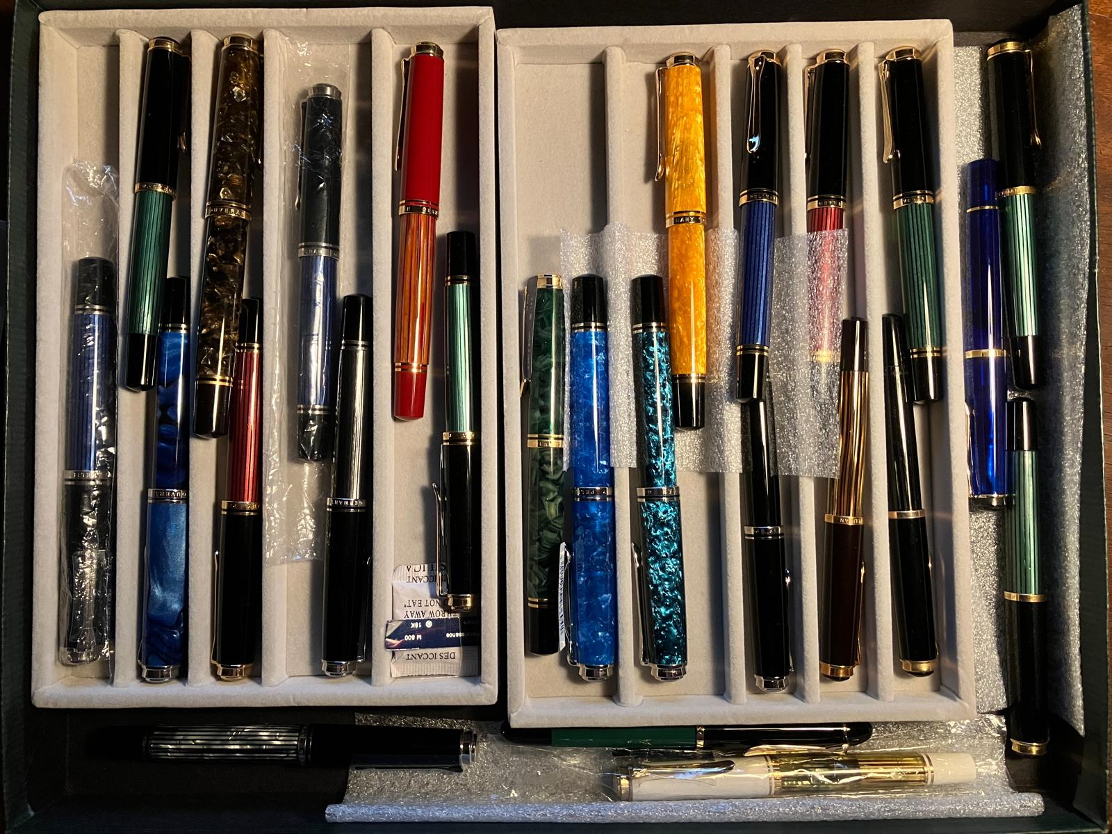 Io le Pelikan le collezione in base a due criteri : il colore e il tipo di pennino. Tendo a preferire i M, B, OB e OBB ma qualche F/OF e EF compare nella mia collezione.