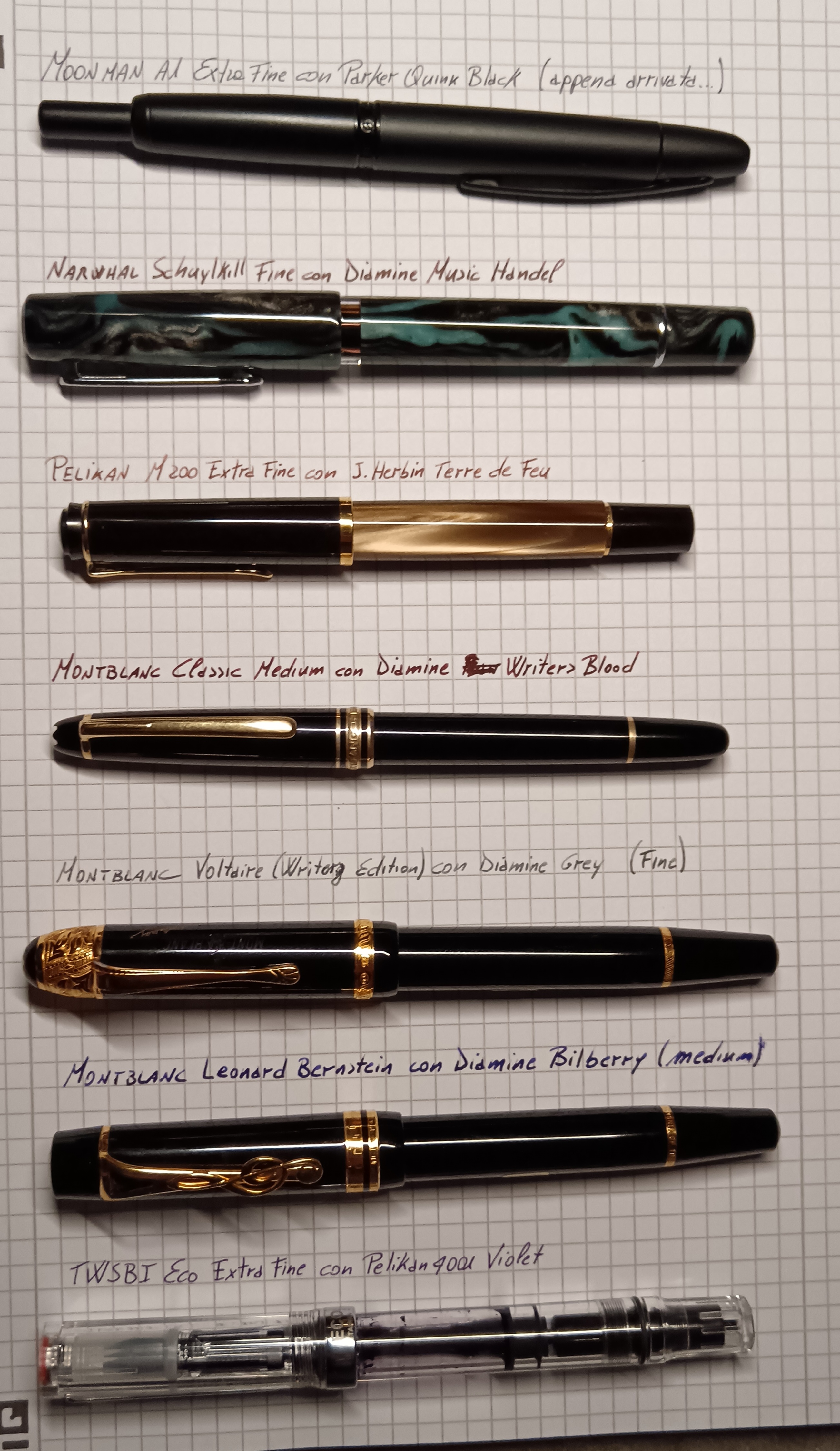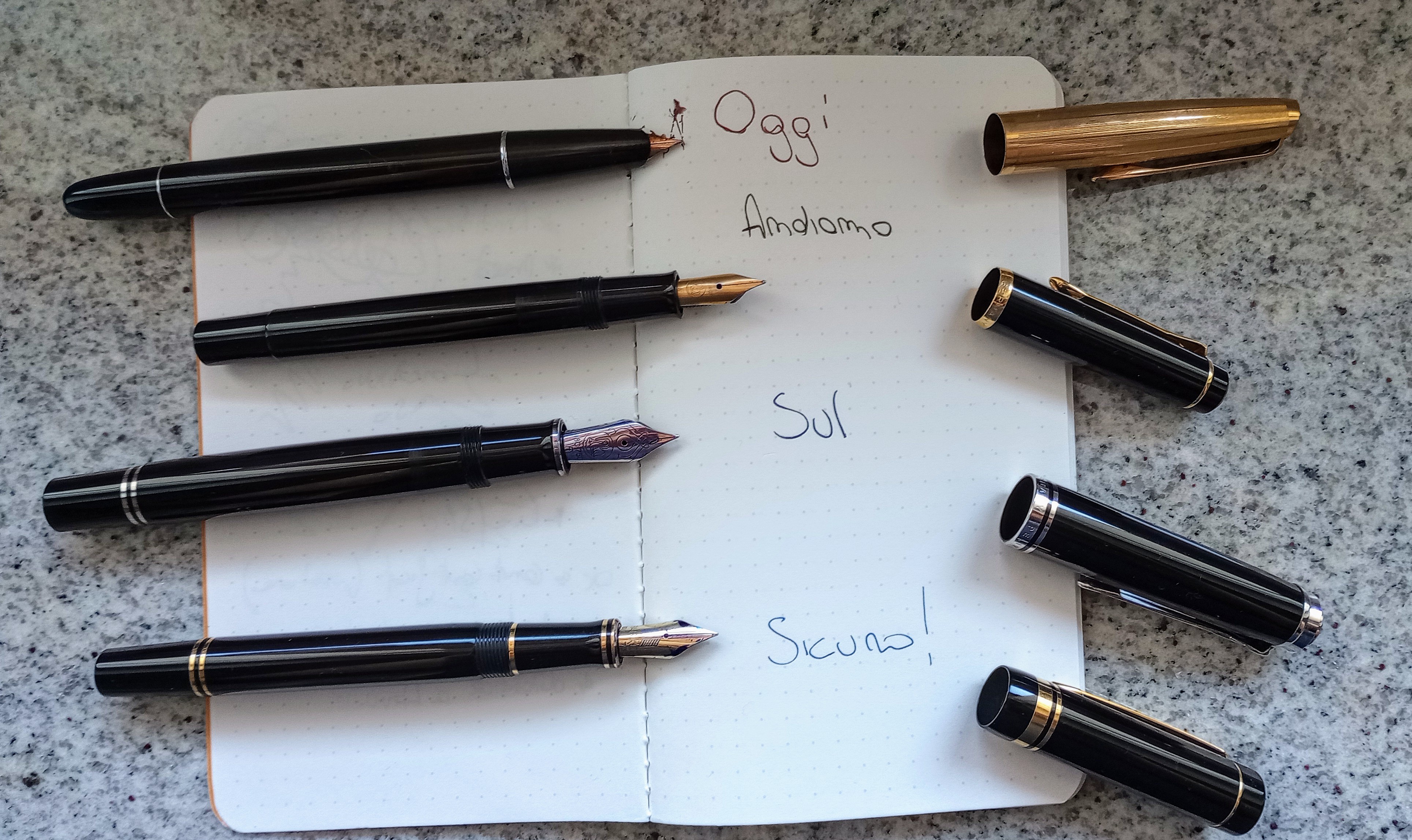 Ti ringrazio; veramente prima di arrivare a questa flotta ho provato di tutto, in tanti anni.. inoltre nella foto mancano un flex, uno stub ed un CSI base EF. Ho ridotto nel tempo il range delle punte, per via della mia scrittura piccolaRisottoPensa ha scritto: ↑mercoledì 7 febbraio 2024, 21:54 Complimenti per lo stormo, ma sembra che hai assaggiato solo una fettina dei pennini disponibili sul mercato![]()