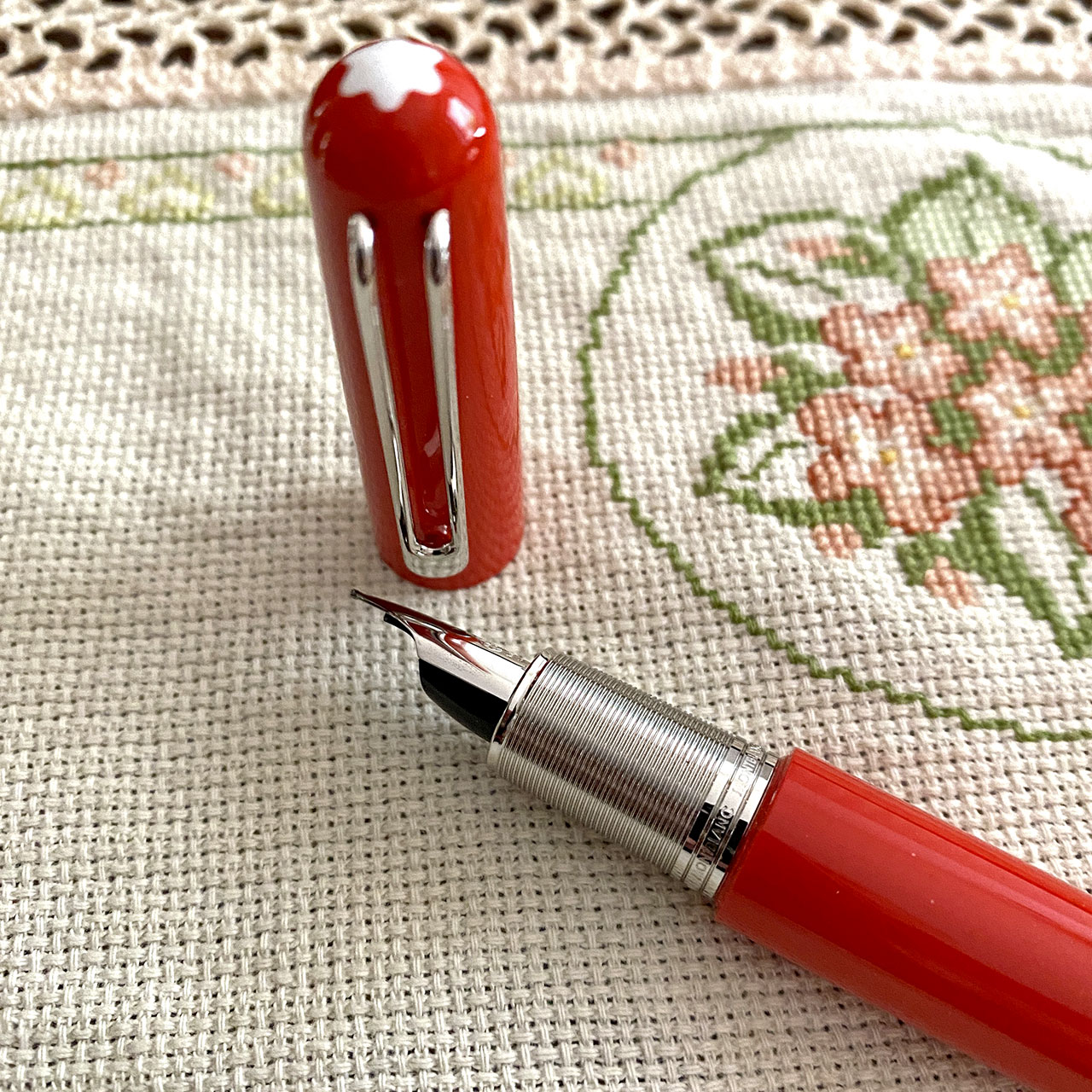 Ho scelto un pennino in acciaio medio, i commenti sul v-flex mi hanno un po condizionato. Per adesso sono molto soddisfatto, caricata senza nemmeno il lavaggio, scrive proprio bene. Da vedere è uno spettacolo.