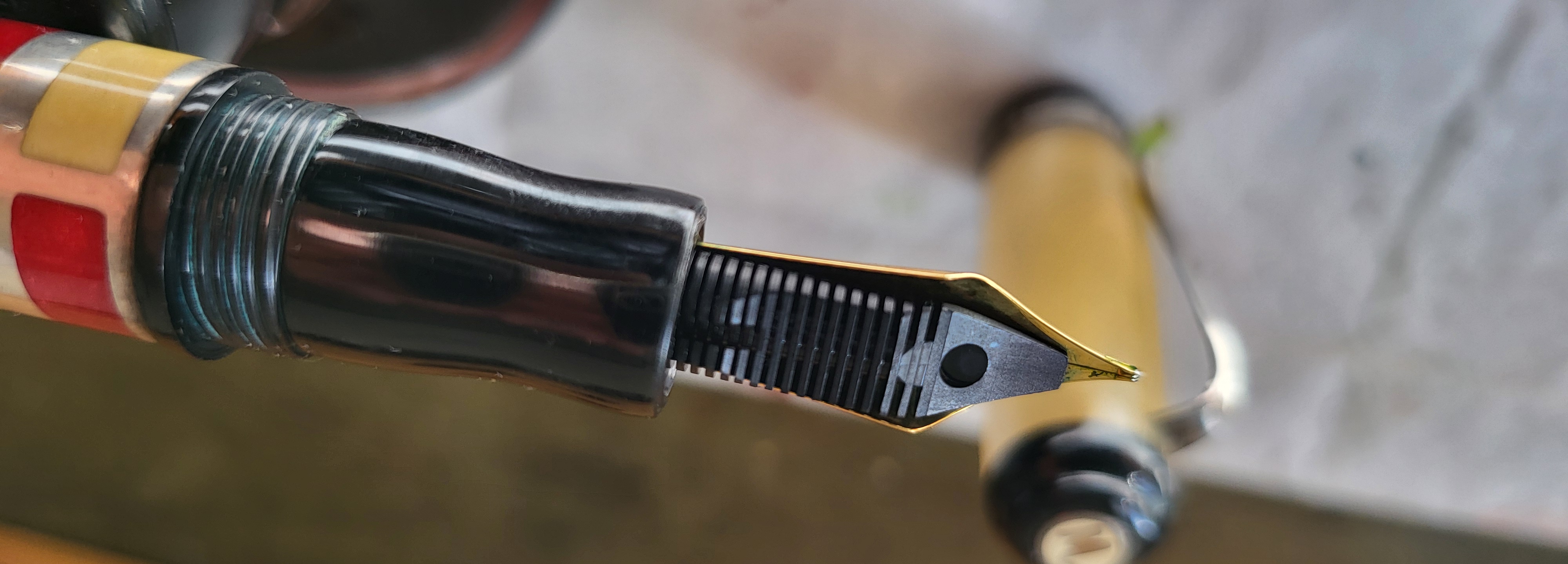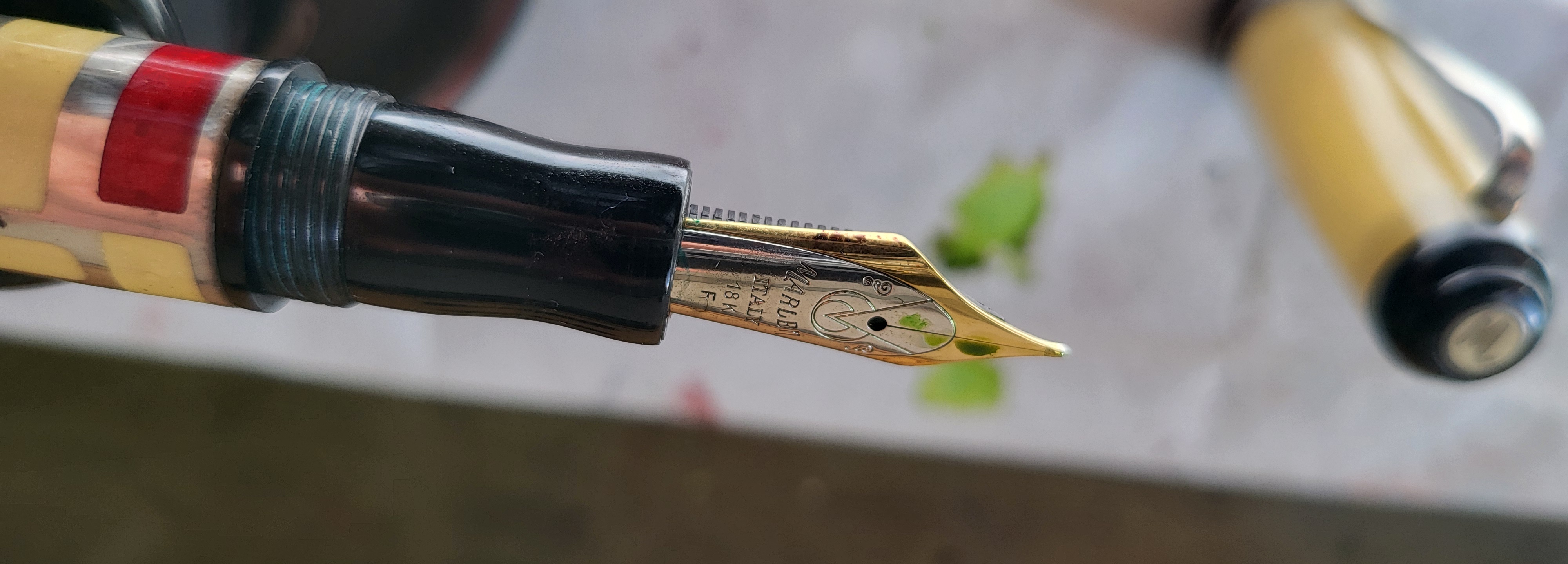 Buongiorno, ecco alcune foto del Marlen che mostrano la sezione e il pennino.sansenri ha scritto: ↑martedì 27 agosto 2024, 11:57simpatica la Marlen. Non mi ha mai troppo convinto la forma strana della sezione delle Marlen di quel periodo (mostreresti?).Modello60 ha scritto: ↑lunedì 26 agosto 2024, 4:28 Ho quattro penne piene di inchiostro. La forum Duchess è riempita con inchiostro Parker Penman Ruby e rimane la mia penna preferita. La MBH è riempita di yama-budo, un colore che aiuta a illuminare le brevi giornate invernali. La Omas Gentlemen è riempita con Parker Quink nero e infine la Marlen 'Forme' del 2003 è riempita con un altro iroshizuku, il chiku-rin.