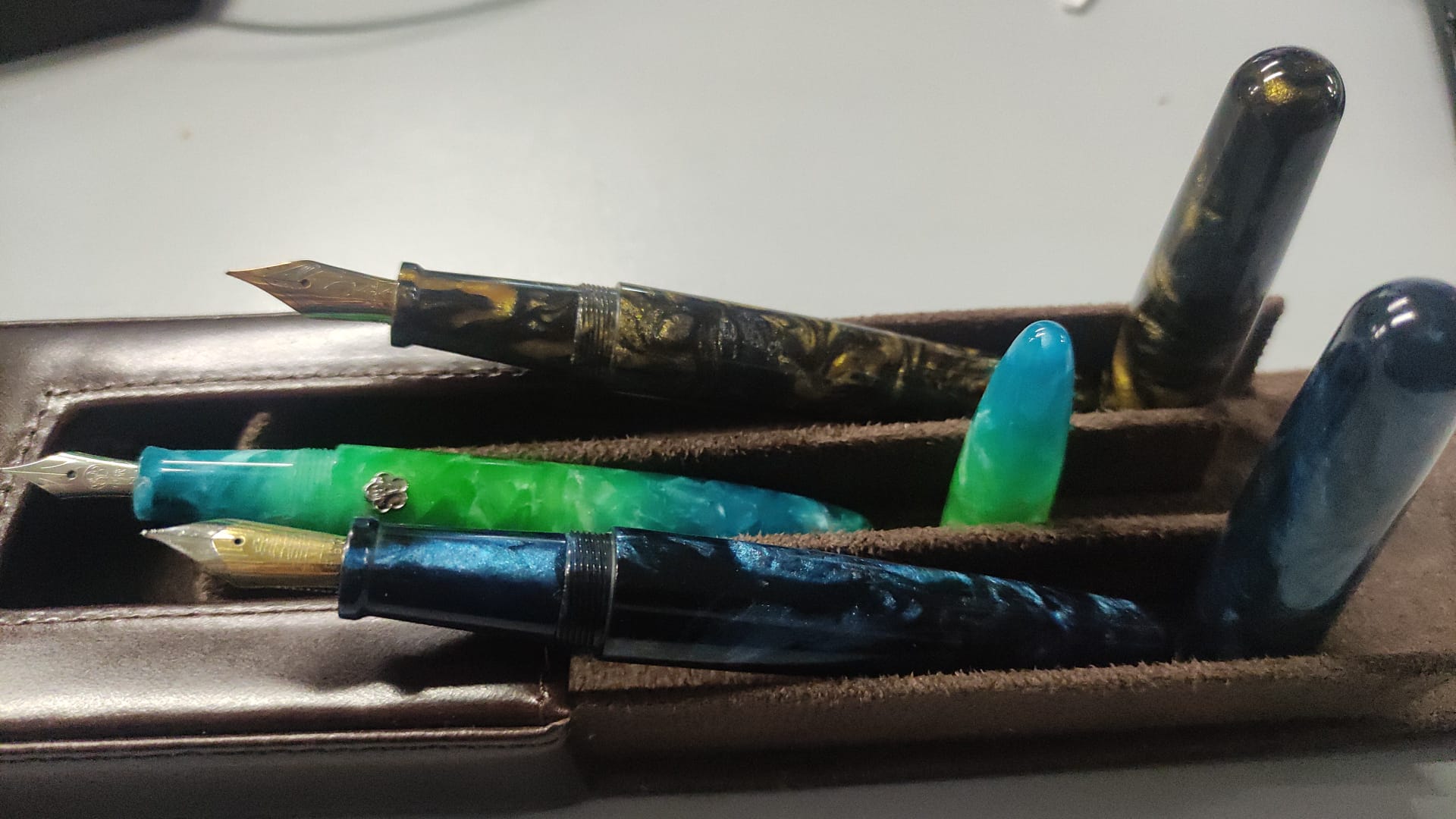 La blu ha il pennino Hongdian, la nera-oro quello Kaigelu (per ora).
