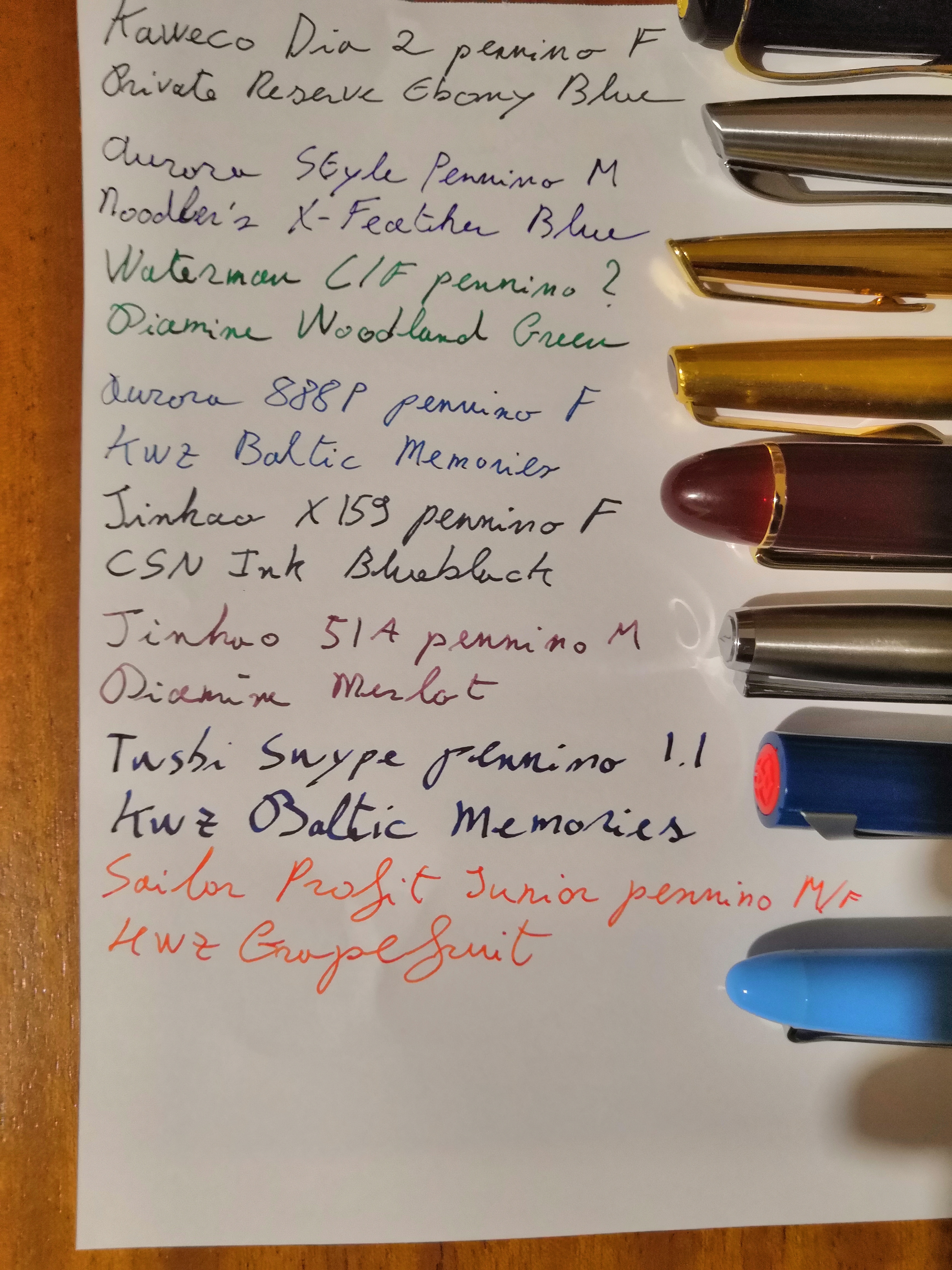 In questo momento ho fatto ordine anche mentale ed ho disponibili inchiostrate pronte solo le Pilot ed una Aurora Ipsilon, questa da portare in giro. Ah no, anche la Leonardo MZ ma voglio cambiare inchiostro perché quel verde, mah, non mi soddisfa