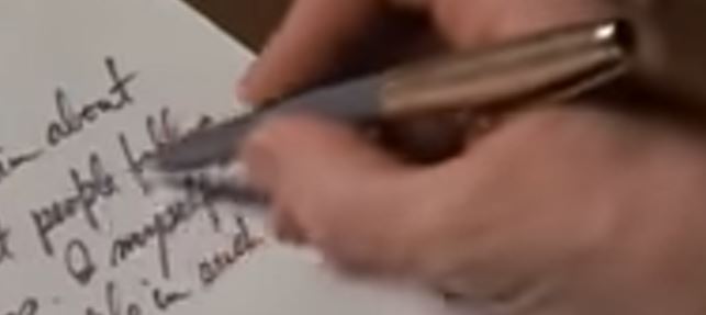 Scena esame da La meglio gioventù, il saggio dinosauro scrive con una stilo la cui impugnatura mi ricorda tanto una Waterman economica: