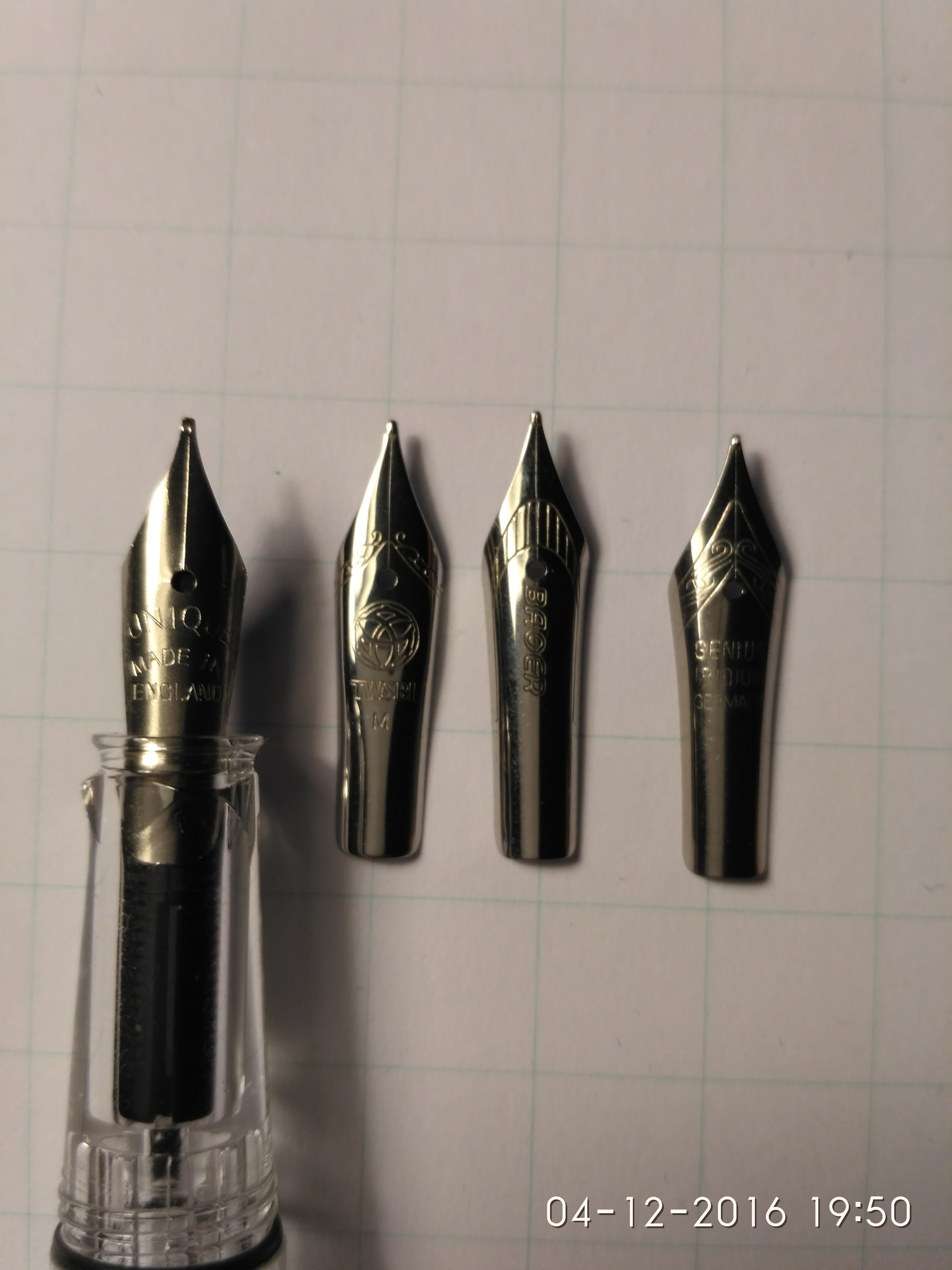 Detto questo... ne montati di vario tipo... e non ho trovato difetti, poi sarò stato fortunato ma anche se con il feed castomizzato, il pennino della eco ha sempre la larghezza alla base di un #5, per evitare problemi comunque aspetta che gli ritorni quelli specifici....