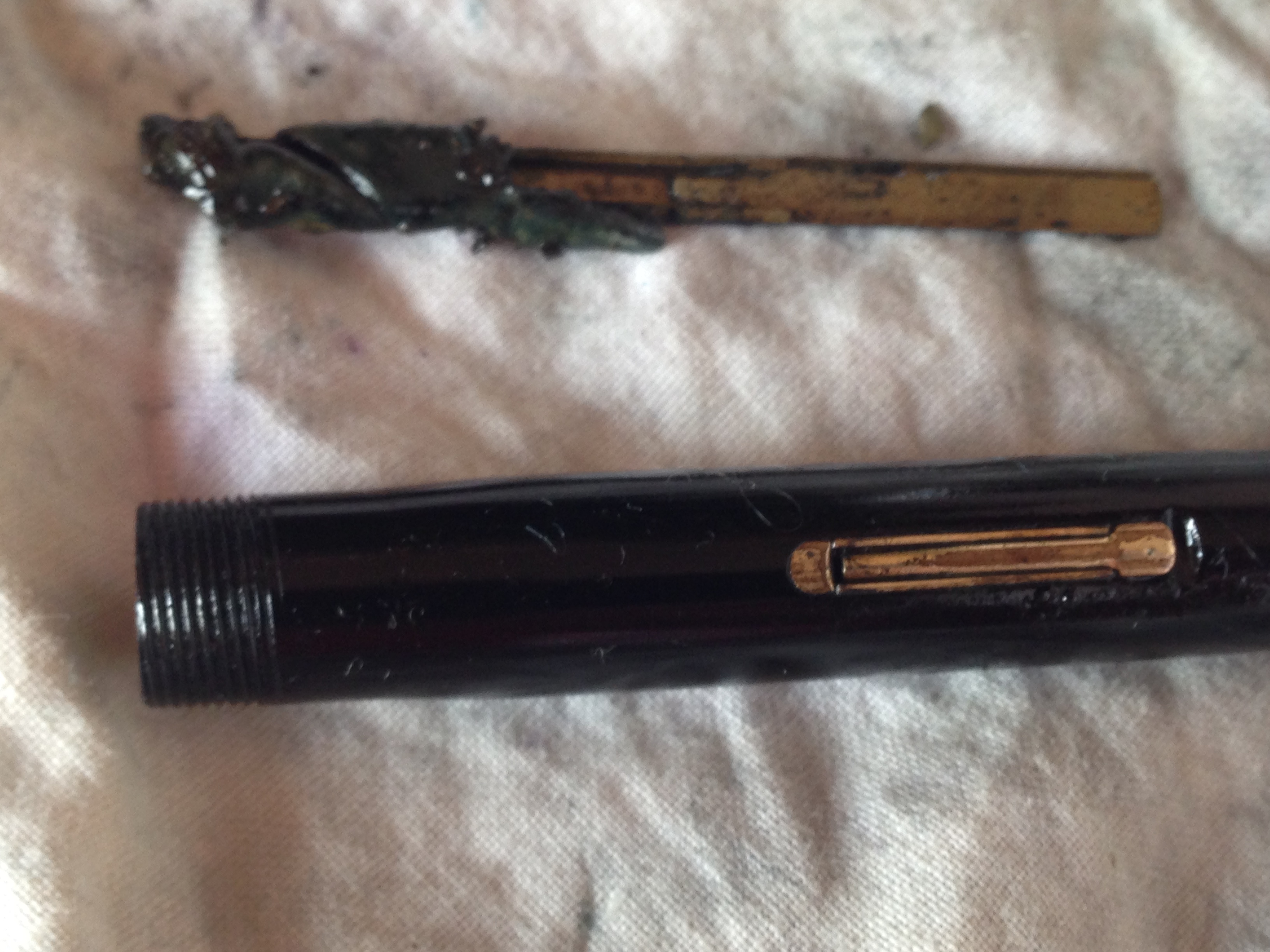 Su questa però ho estratto io dal retro il sacchetto completamente secco, il pennino, un Durium sembra appartenere all'epoca, in effetti non reca tracce di altri interventi, a parte la mancanza della clip.