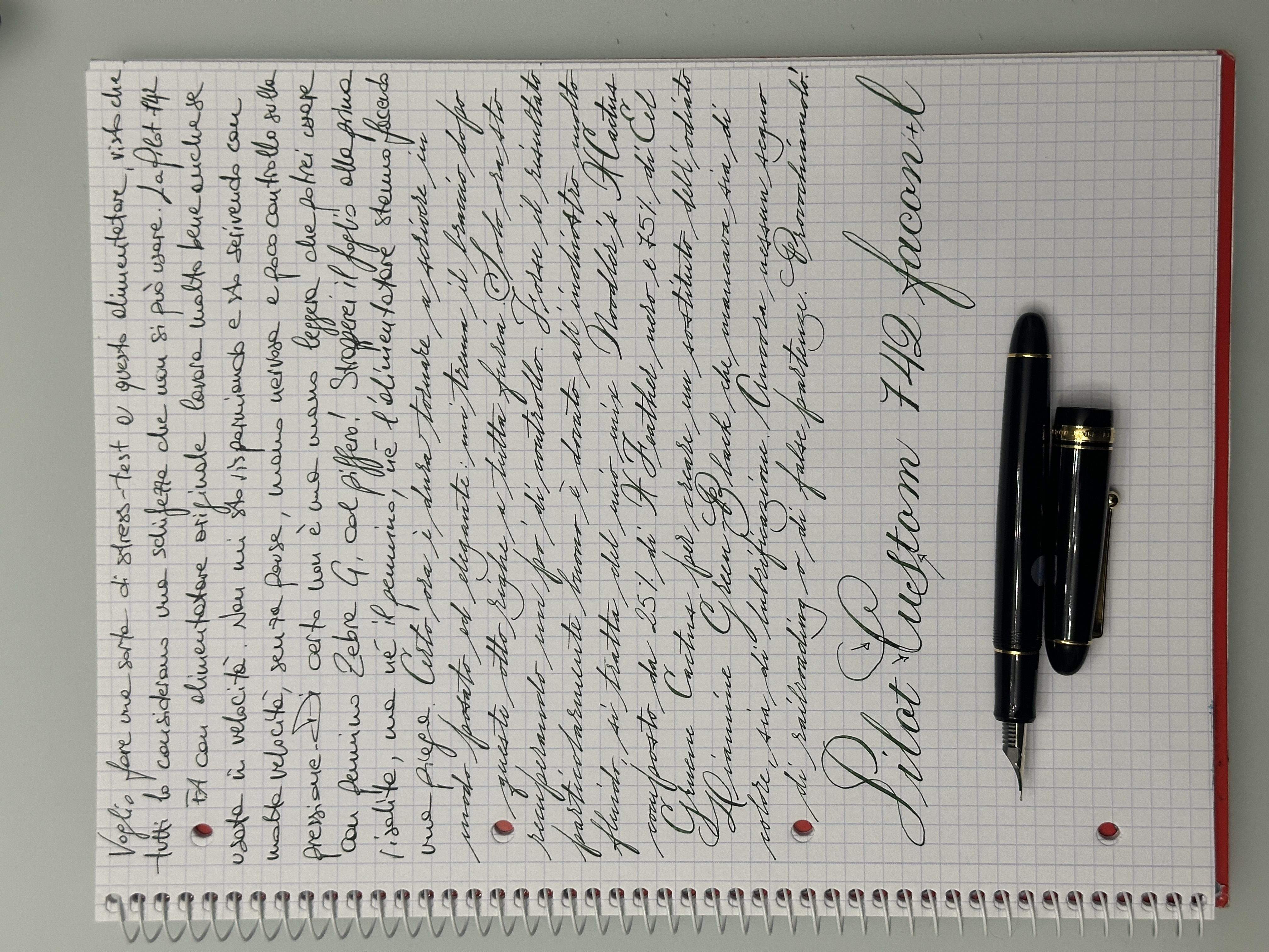 Inoltre e chiudo: sarebbe molto utile vedere prove di utilizzo fotografate da parte dell’opener; ritengo molto strano che il controllo qualità Pilot si sia fatto fuggire un pennino FA difettoso (anche in questo caso foto aiuterebbero).