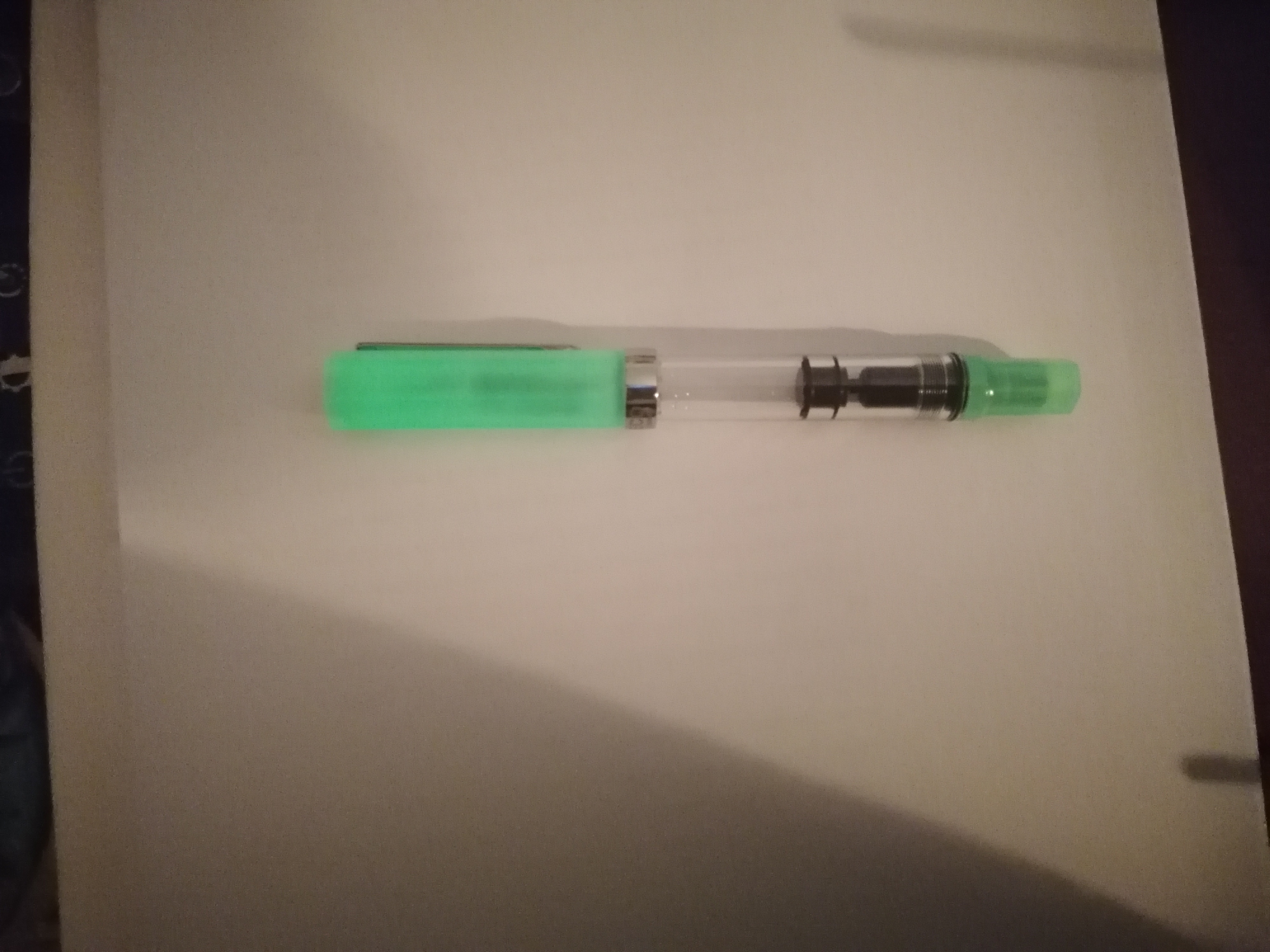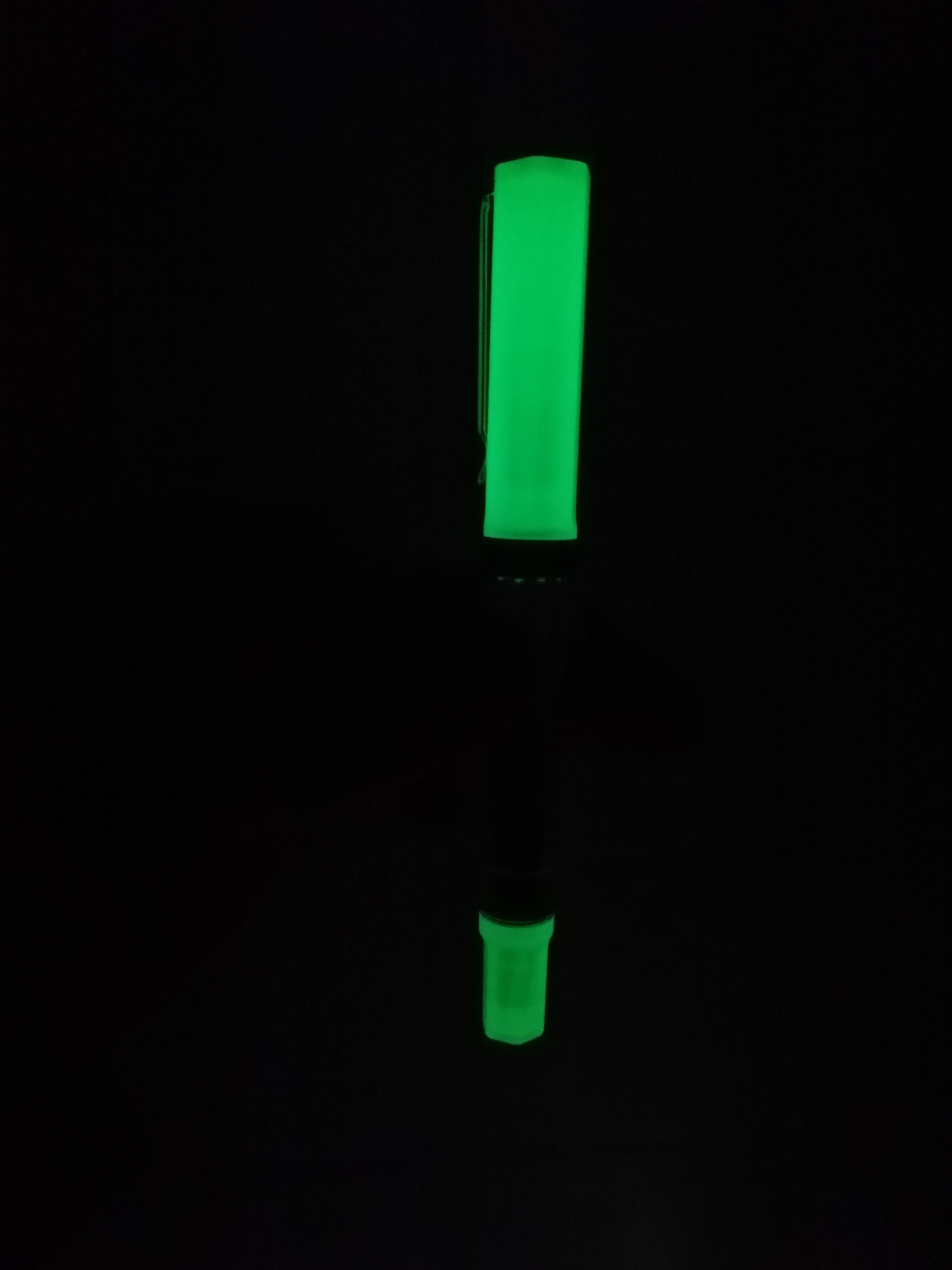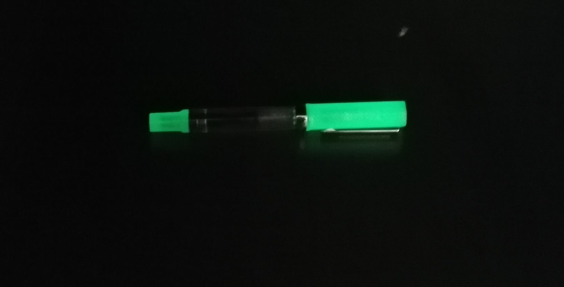 Ho fatto un'altra prova lasciando la penna sotto una lampada da scrivania a LED per 15 minuti (distanza dai led 20 cm), e fotografandola entro 60 secondi dopo aver spento i LED: