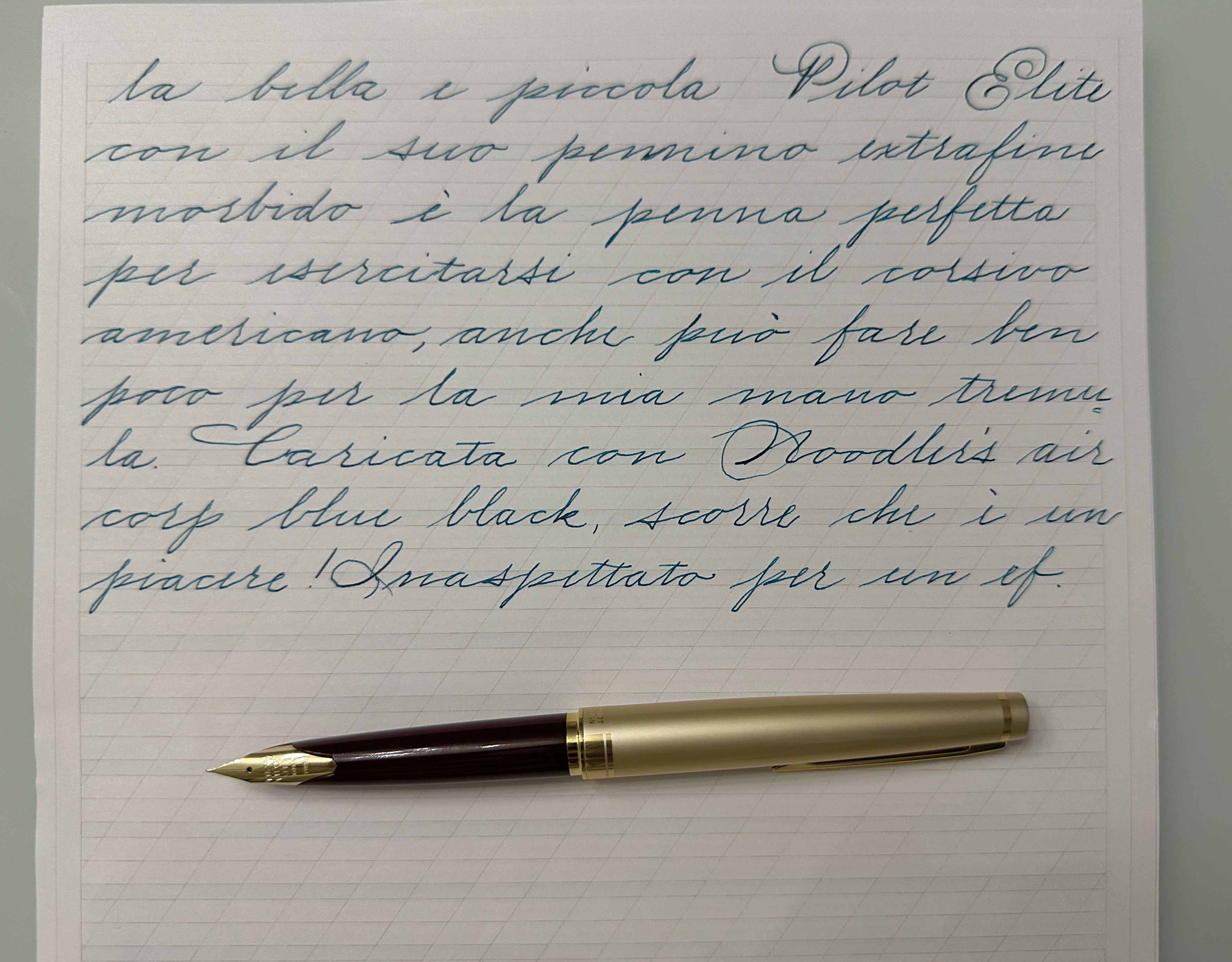 Fra le altre mi piace la Pilot Elite 95S (non so perchè, ma nonostante il nero non la trovo troppo seriosa). Problemi: non mi convince il pennino "incassato" e la compatibilità delle cartucce.