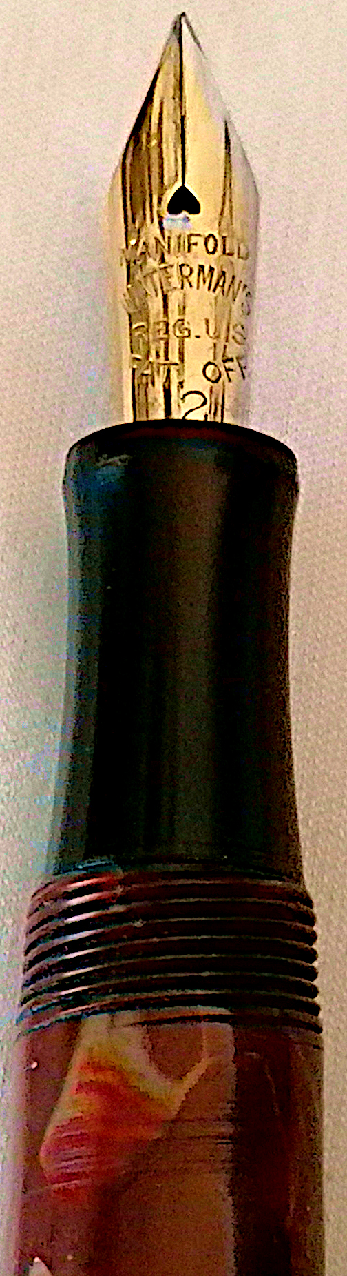 Pennino: originale in oro 14 k, imprint: MANIFOLD WATERMAN’S REG.U.S. PAT. OFF. 2 MADE IN U.S.A. (su cinque righe)