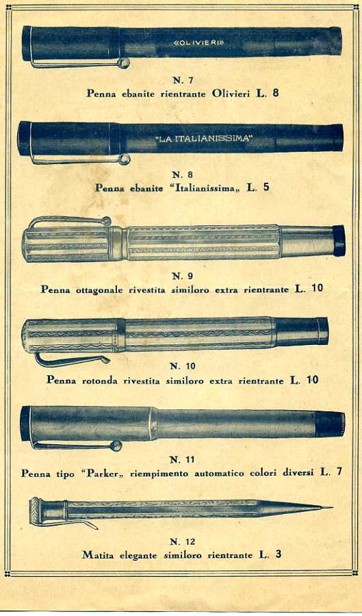 Comunque spinto dall'interessante catalogo ho creato la pagina della ditta (a nome del suo proprietario, Giuseppe Olivieri) che di marchi ne depositò un bel po'...